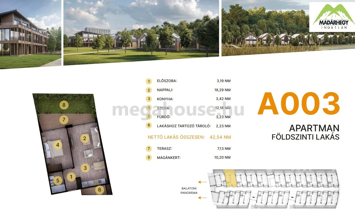 42 nm-es, N+1 hálós apartman, 7 nm terasszal és 6 nm-es kis saját kerttel 94,5 M Ft-ért eladó.