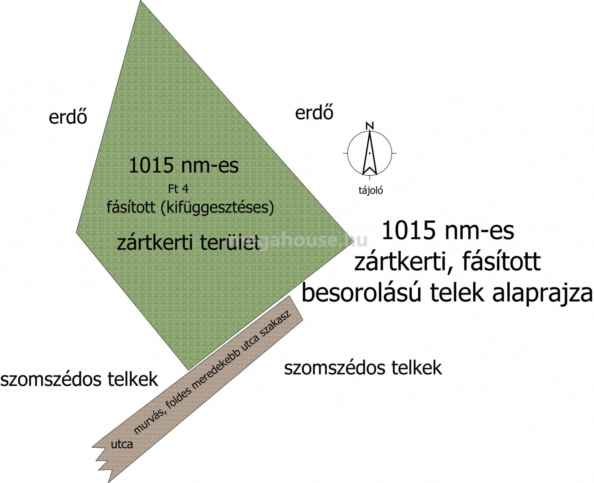 1015 m² területű, szabálytalan alakú telek