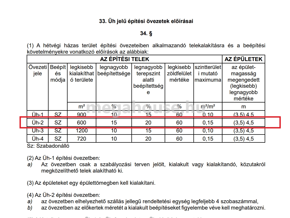 A telek övezeti besorolása: ÜH-2
