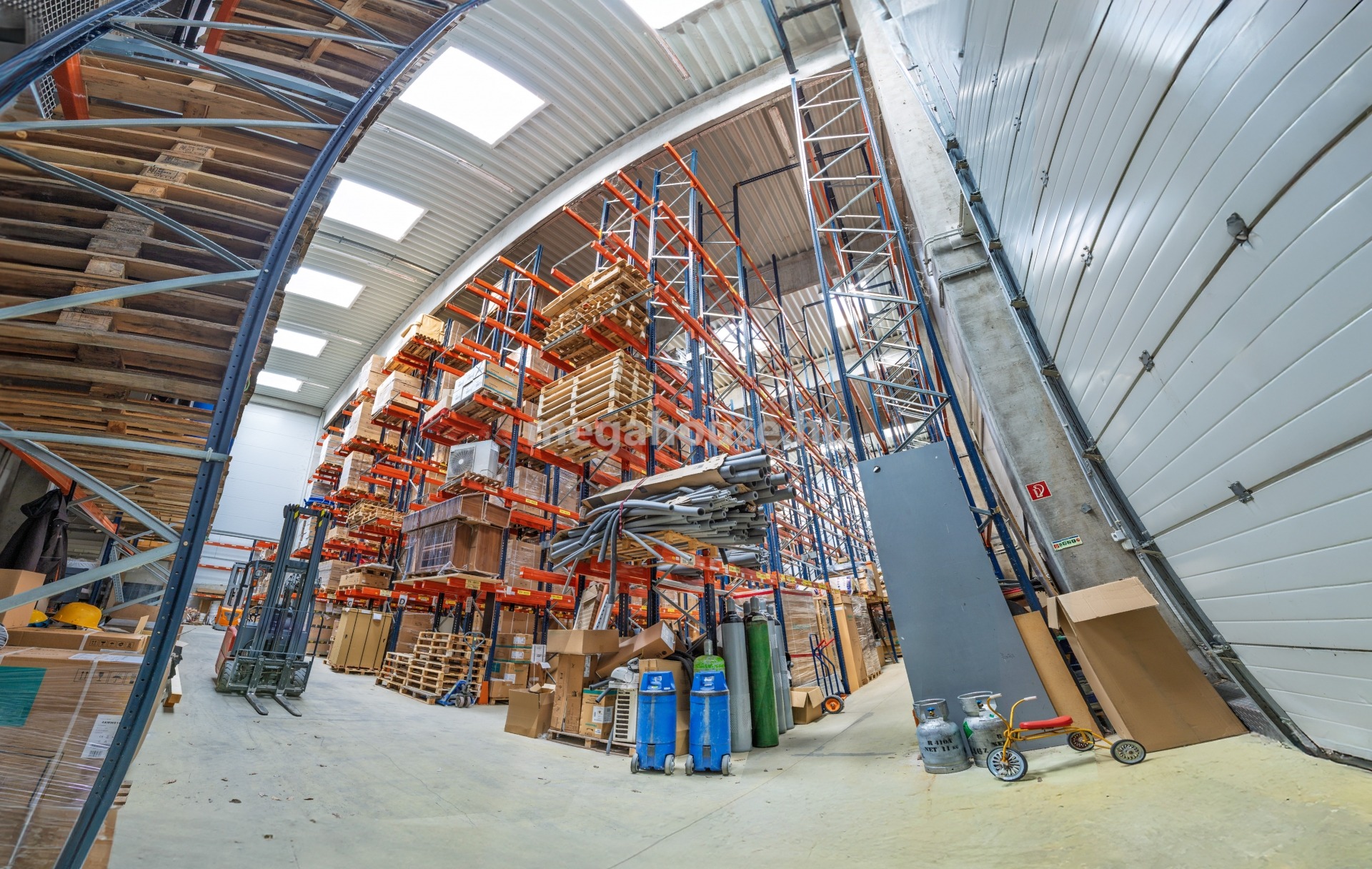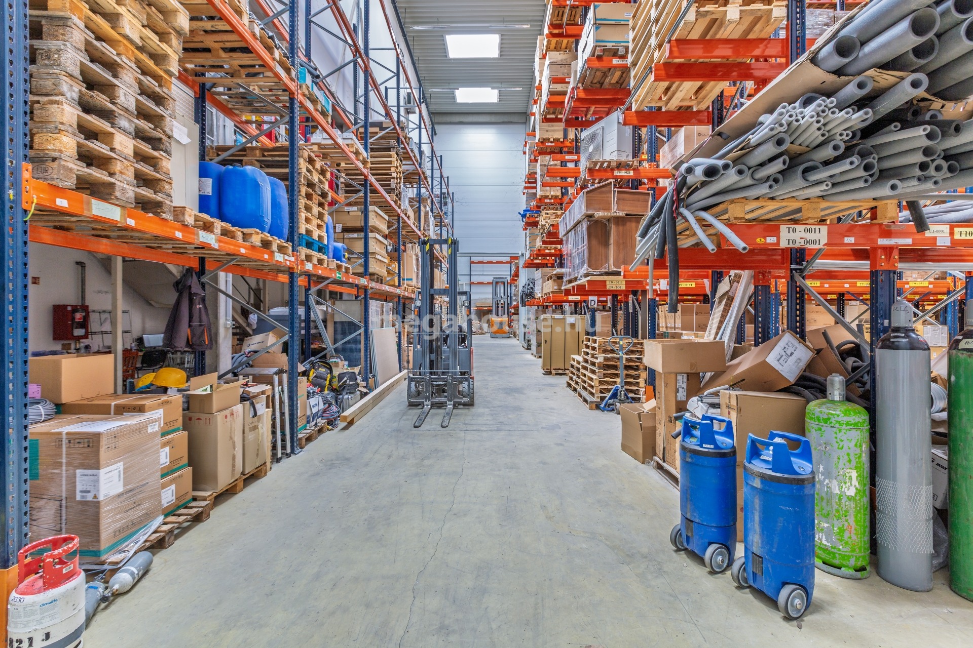 - Raklapos áru befogadására optimális mindösszesen 2.000 nm alapterületű, 12.6 m belmagasságú, műgyanta burkolatú, radiátoros temperáló fűtéssel ellátott, magas emelésű targonca rendszerre kiépített állvány rendszerrel rendelkező, 3000-3200 db raklap befogadására alkalmas raktár, amelyhez több szociális blokk, öltöző is tartozik.
