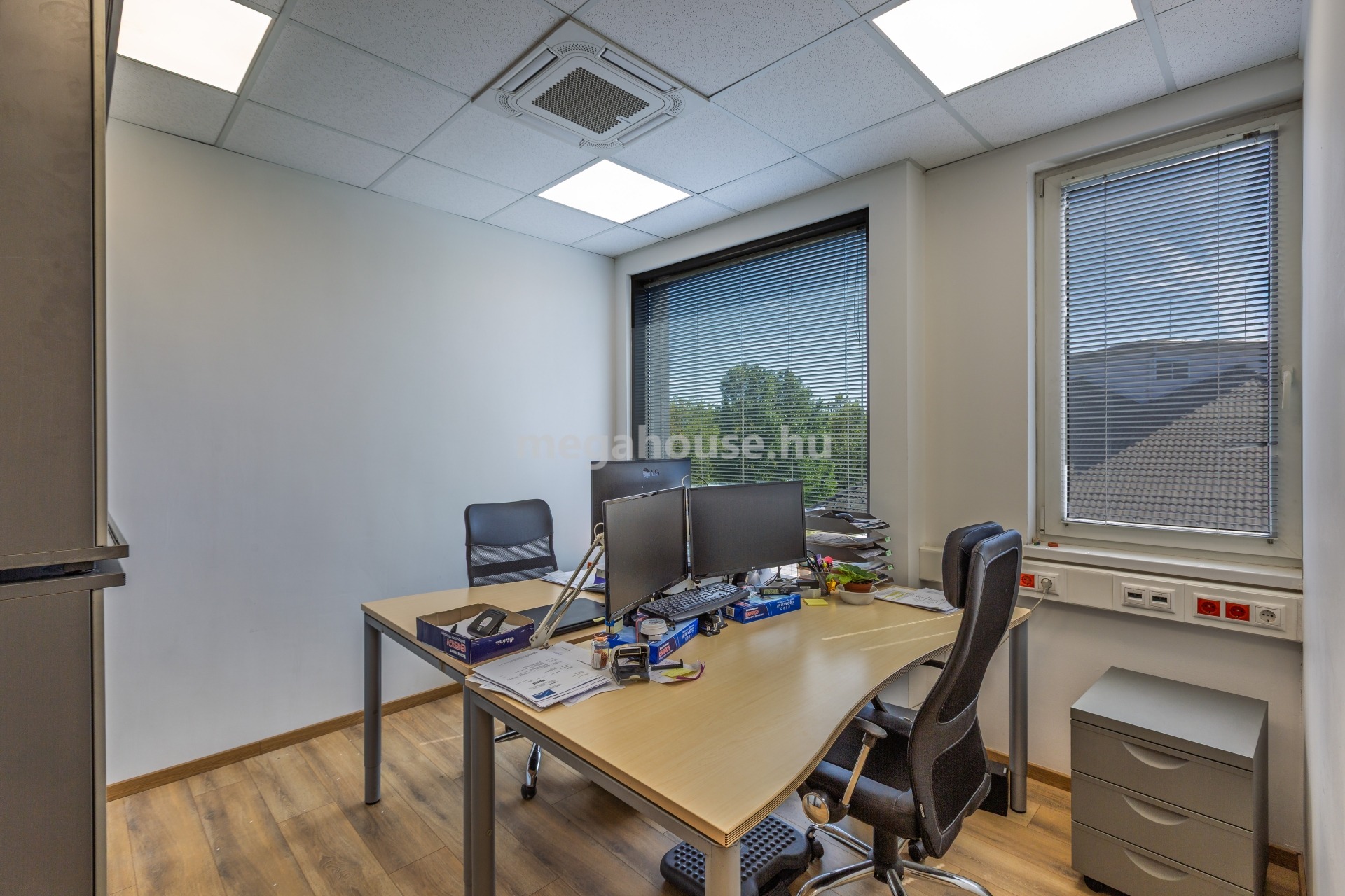 - Igényes, modern kialakítású, első és második emeleti, szintenként 250 nm, azaz összesen 500 nm, saját teakonyhával, szociális blokkal, hűtő-fűtő fan-coil rendszerrel, gyengeáramú hálózattal ellátott irodablokk.