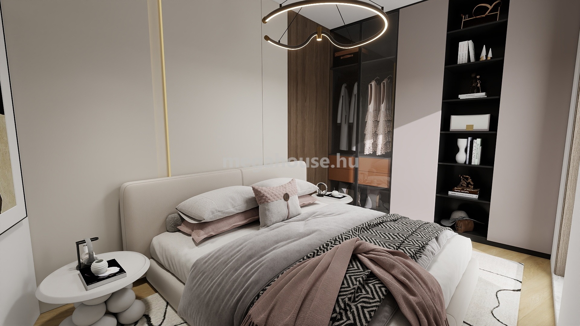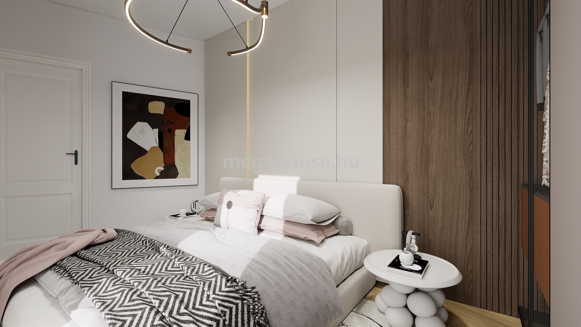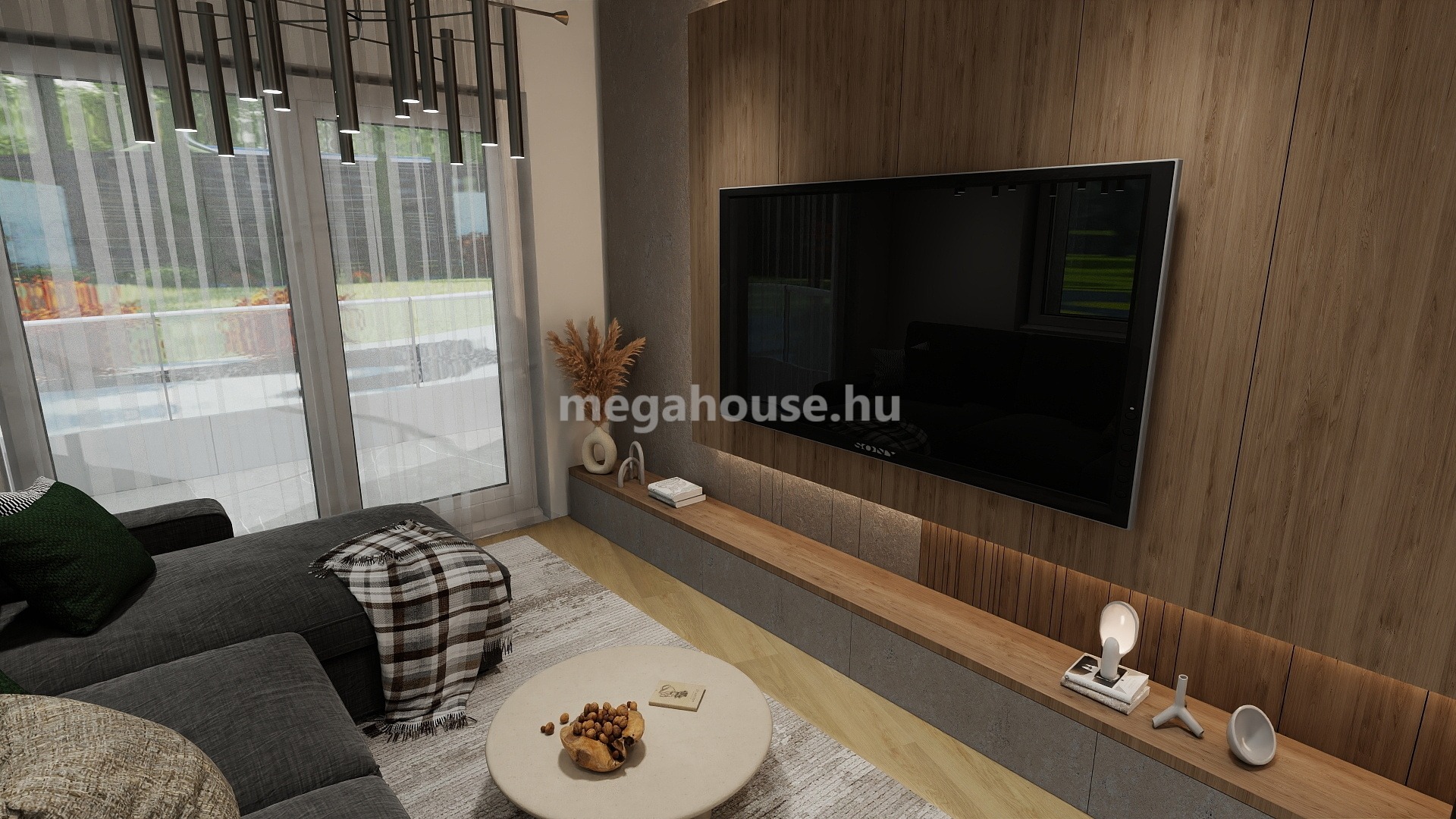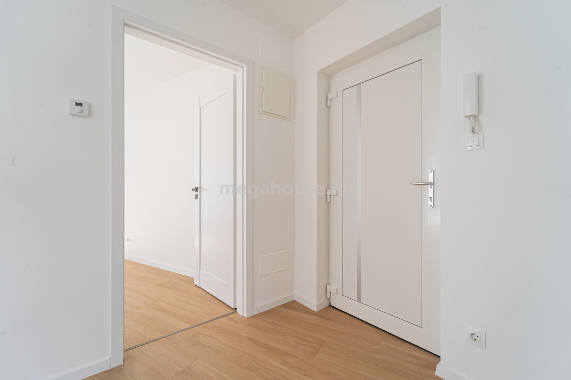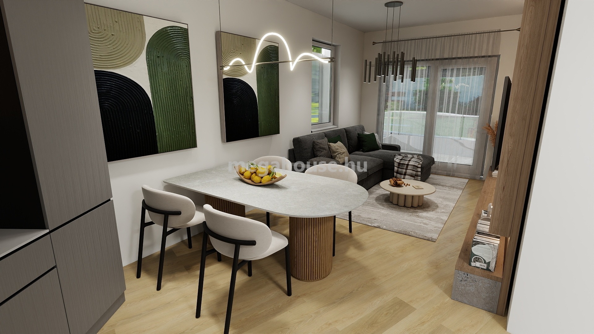 A 601 nm alapterületű saroktelken épülő társasház biztonságos, zárt lépcsőházából léphetünk be az első emeleti lakás előterébe. Bal kéz felől a zuhanyzós fürdőszoba, jobbra a hálószoba található. A lakás központi részén a teraszkapcsolattal is rendelkező napfényes és világos nappali – konyha – étkező tér fogadja az itt lakókat és vendégeiket. Extraként már beszerelésre kerültek az elektromos alumínium redőnyök, amelyek kényelmes megoldást nyújtanak a fény- és hőszabályozásra.