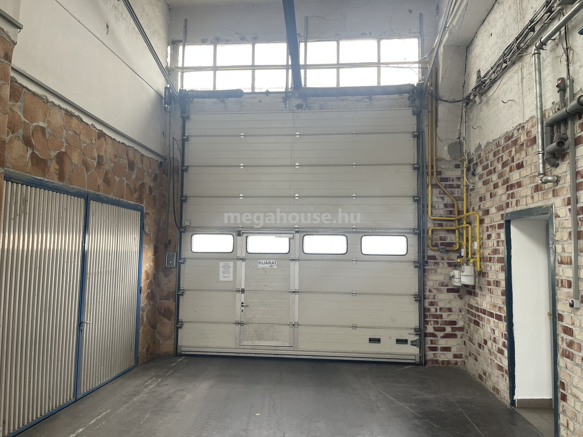 belmagasság 4,8 m, darupálya alsó síkja: 3,45 m, 2 db ipari kapu (3,8 m x 3,8 m)