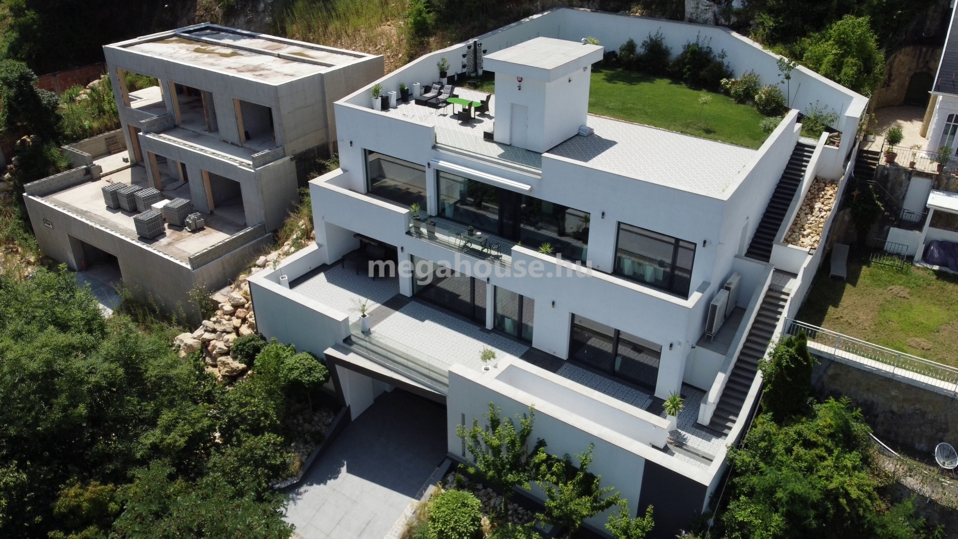 Közel 500 négyzetméteres belső tér, 6 hálószoba, több fürdőszoba, összesen 270 nm terasz, 120 nm egyedi tetőkert, épületen belüli lift, teremgarázs, hatalmas üvegfelületek exklúzív környezet. LUXUS MINDEN TEKINTETBEN