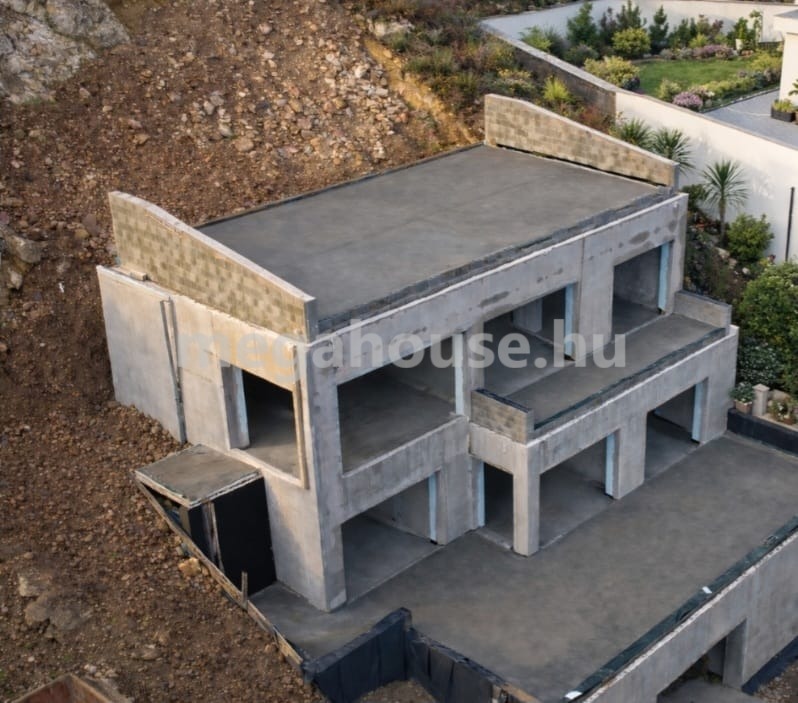Emelt szerkezetkész családi ház a hegyoldalban jelenlegi állapotában 350 M Ft -ért eladó. Kétlakásos ingatlannak is kiválóan alkalmas.