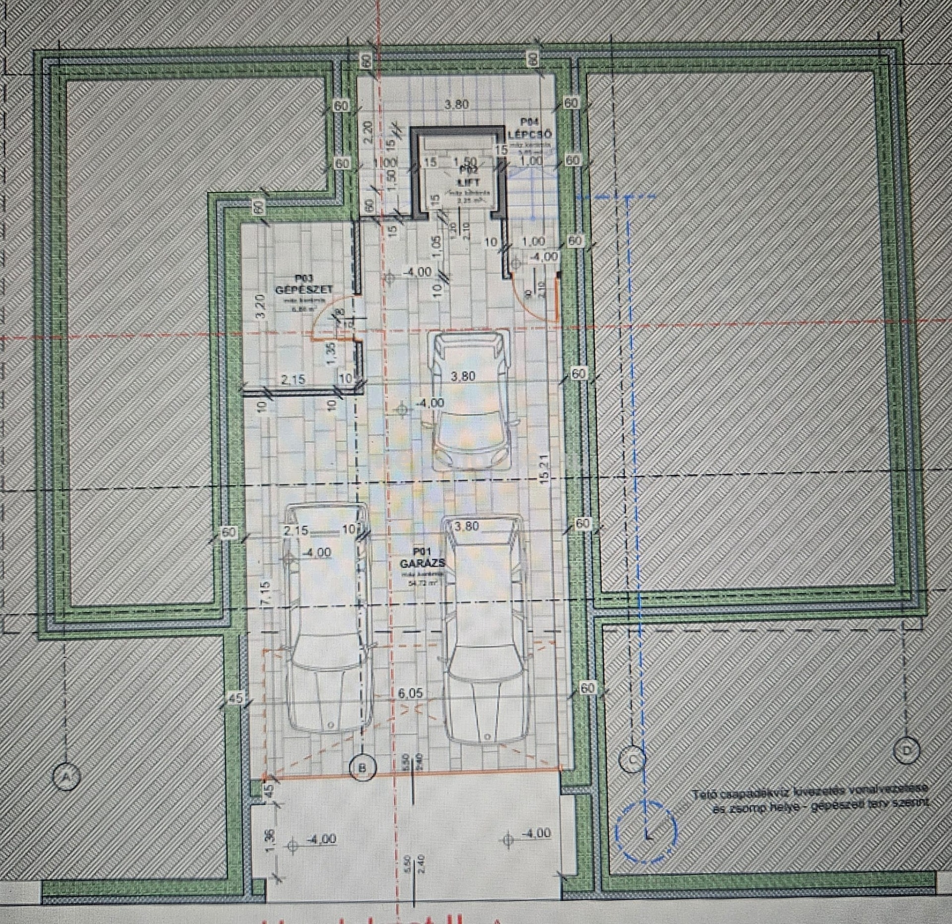 Az utcáról egy nagy belmagasságú TEREMGARÁZSBA hajthatunk be, ahol 3-4 gépkocsi kényelmesen elfér.