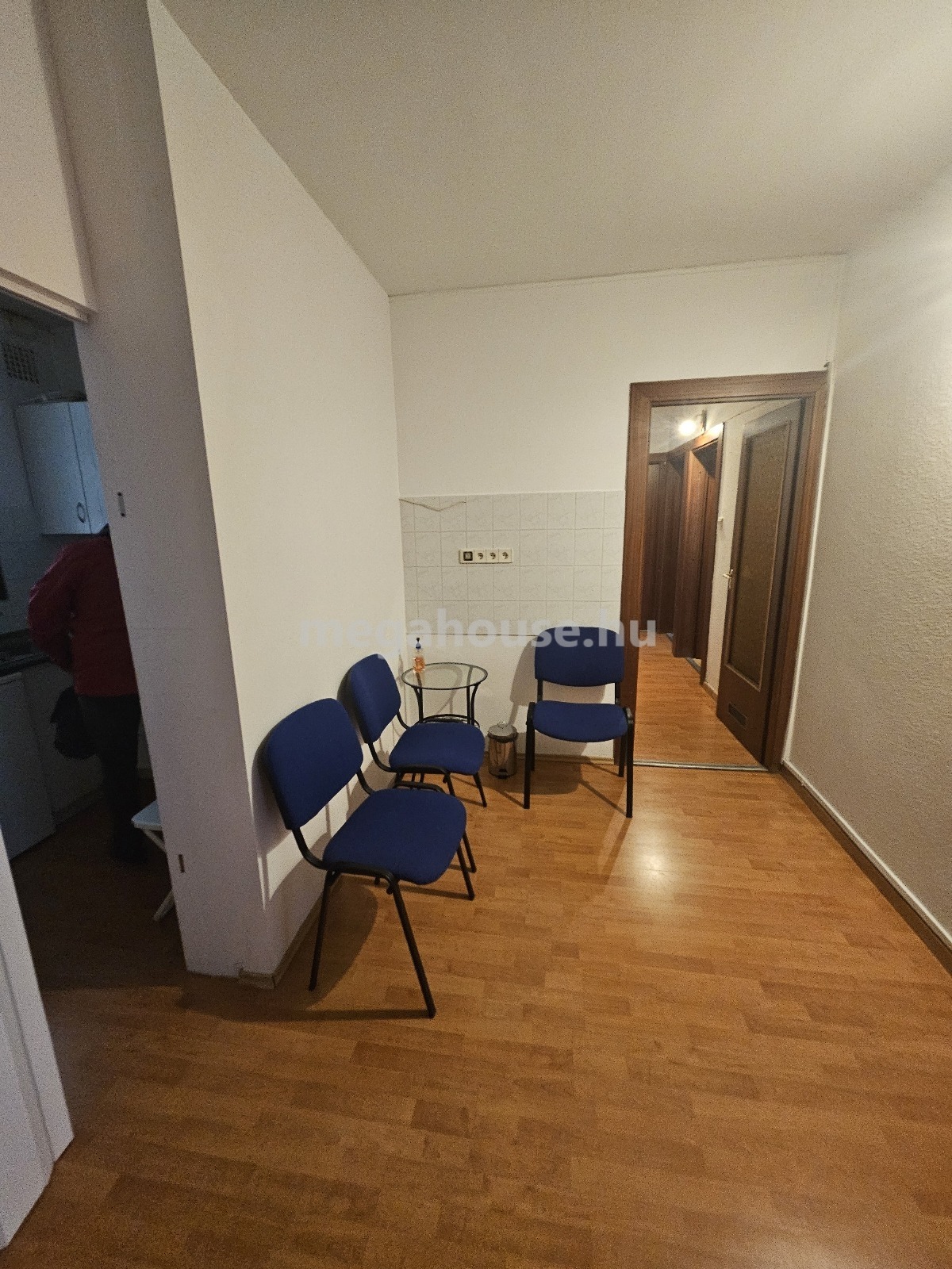 A bejáratnál kialakított váróban 4-5 fő tud kényelmesen leülni. Kis teakonyha van itt elszeparálva.