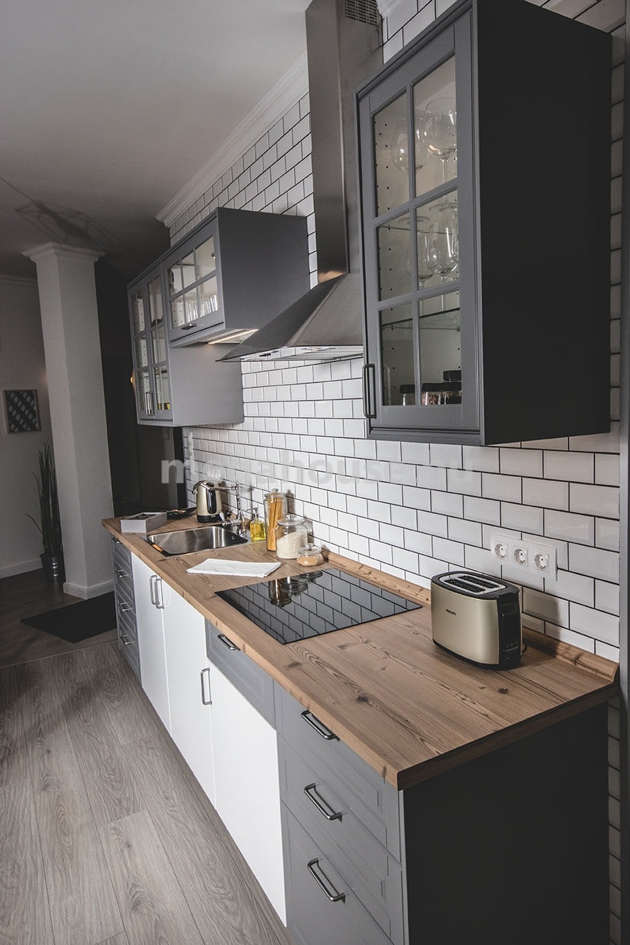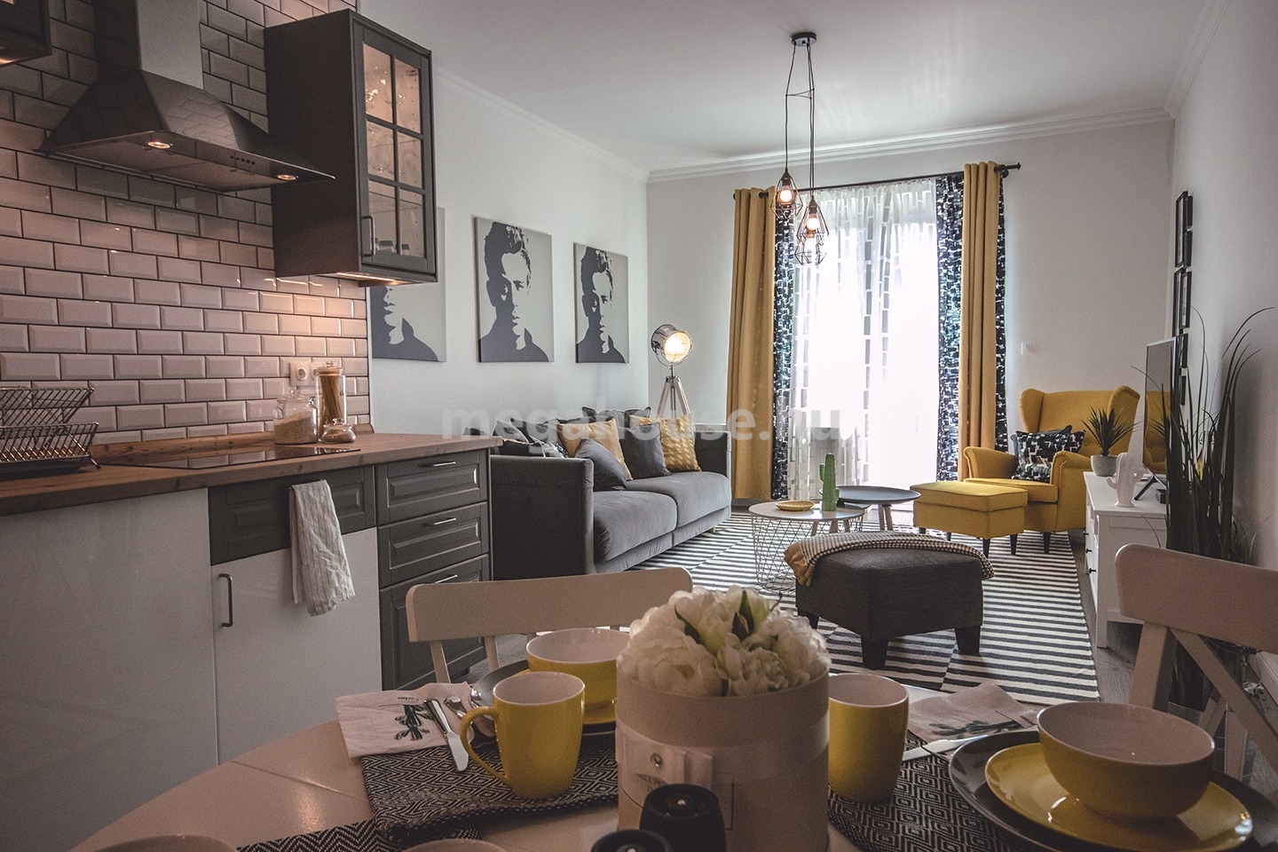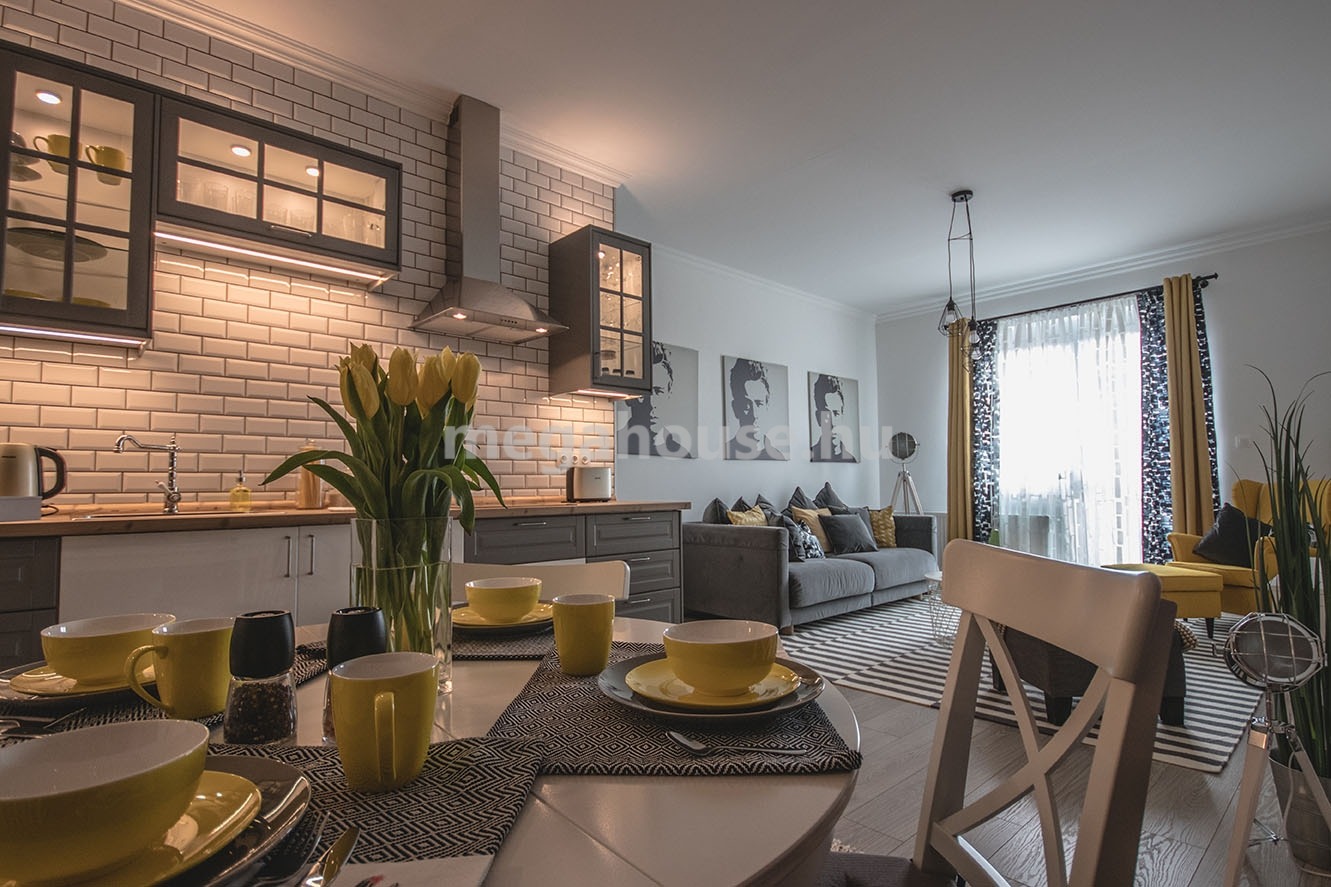 A lakás teljesen bútorozott és gépesített, azonnal költözhető
