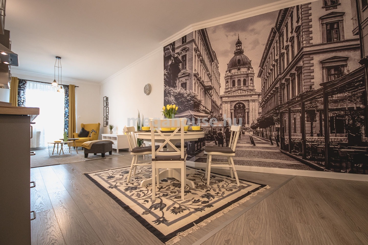 VI. kerület – Bazilika mellett, panorámás, erkélyes, 78 m², nappali + 2 háló – 1 600 EUR/hó (rezsivel)