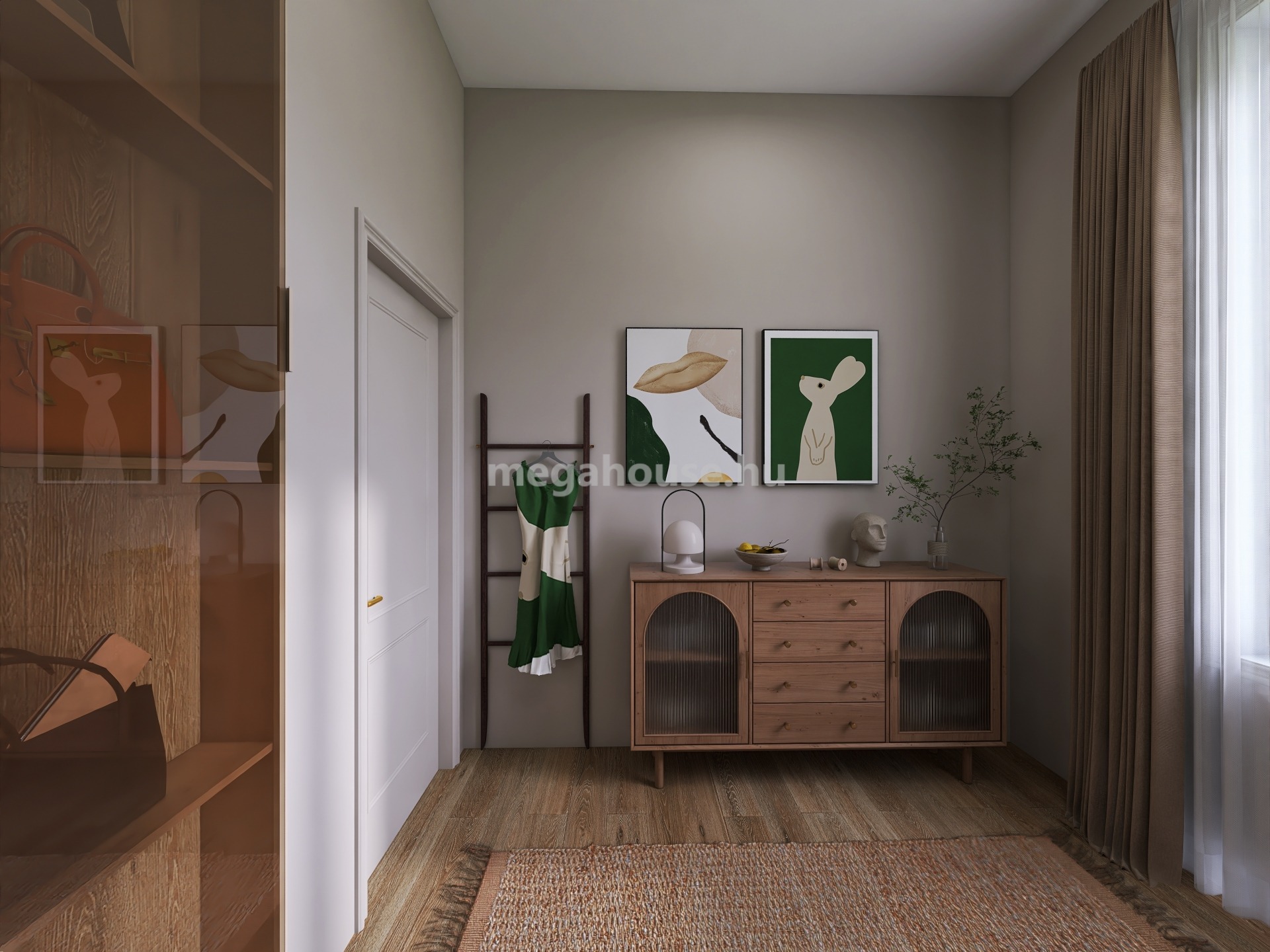 Lakberendező által megtervezett, átgondolt kialakítás, amely maximálisan kihasználja a tereket, számos egyedileg készített beépített szekrénnyel biztosítva praktikus és esztétikus tárolási megoldásokat az egész lakásban.