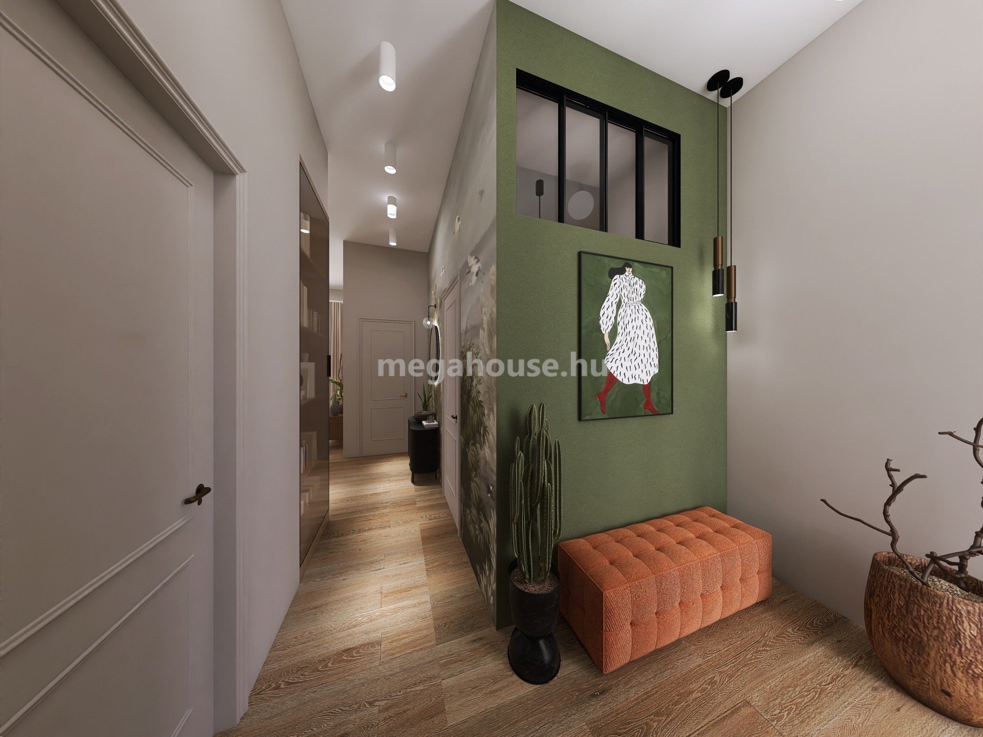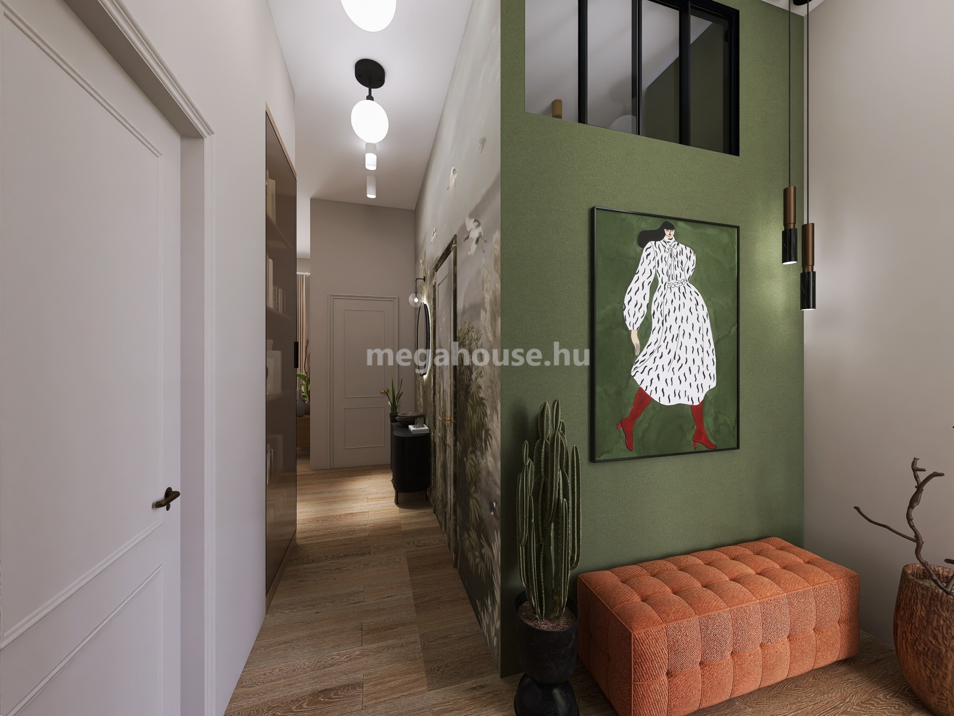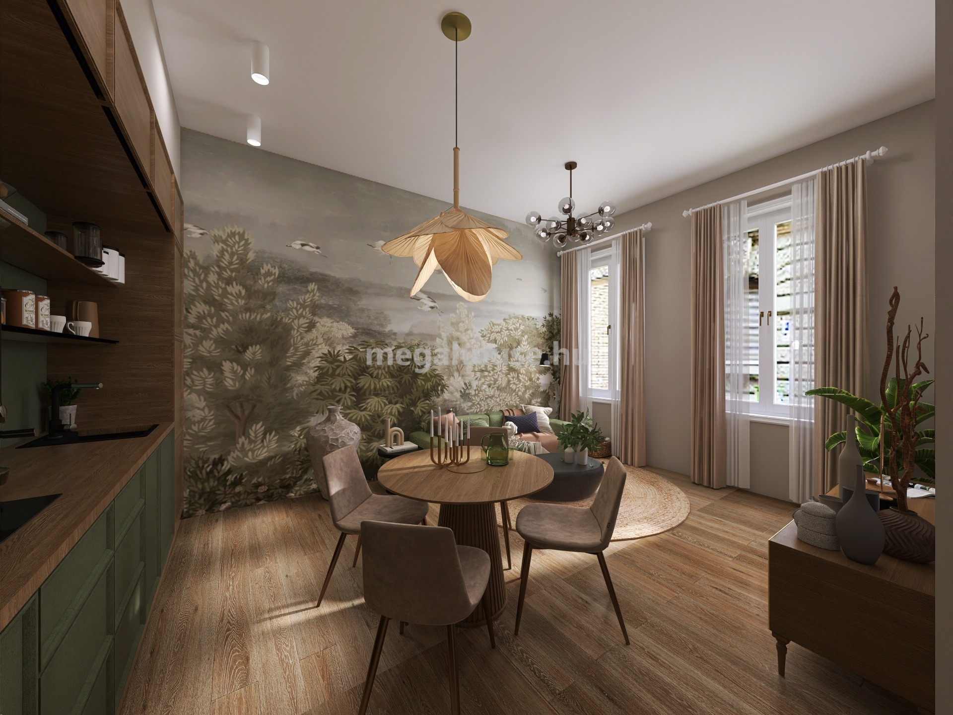 A lakás teljeskörű felújítása során megújult a teljes gépészet, a villany- és vízvezetékek, a burkolatok, valamint korszerű fűtés-hűtés rendszer került kialakításra fan-coil megoldással, a konyha és a vizes helyiségek pedig modern kialakítást kaptak, biztosítva a magas szintű komfortot.