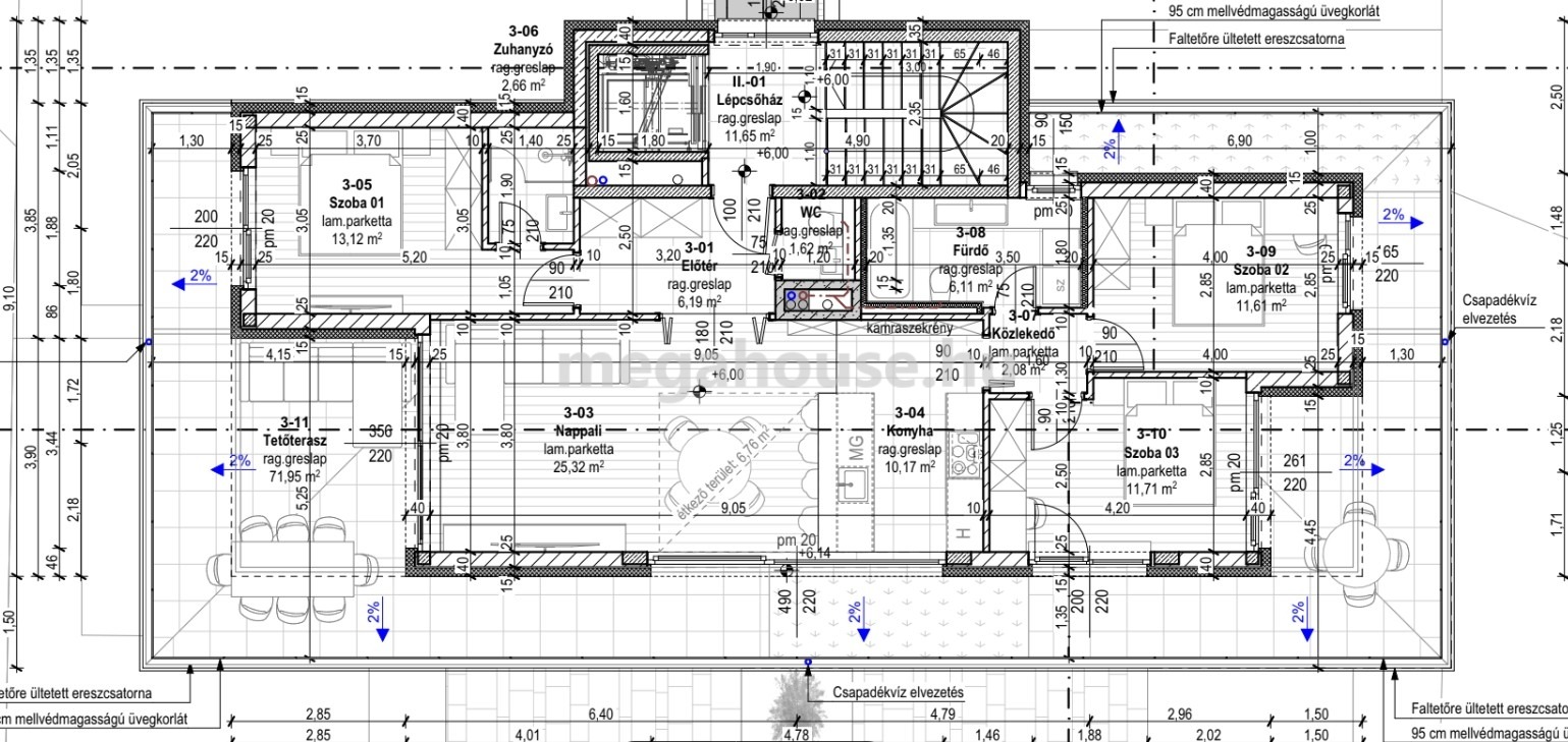 A 71 m²-es, körbefutó terasz a lakás meghosszabbítása – ideális pihenésre, vendégfogadásra, akár jakuzzi kialakítására.