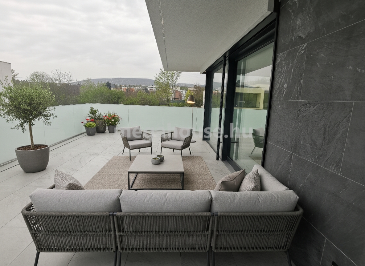 A 67 nm-es körbefutó panoráma teraszon jacuzzinak elő lett készítve a hely. A két ideális méretű teraszkapcsolatos hálószoba egymástól szeparáltan került kialakításra, mindkettőhöz saját nagyméretű, elegáns fürdőszoba és gardrób is tartozik. Egyedi világítástechnika, luxusburkolatok és szaniterek, extra nyílászárók.