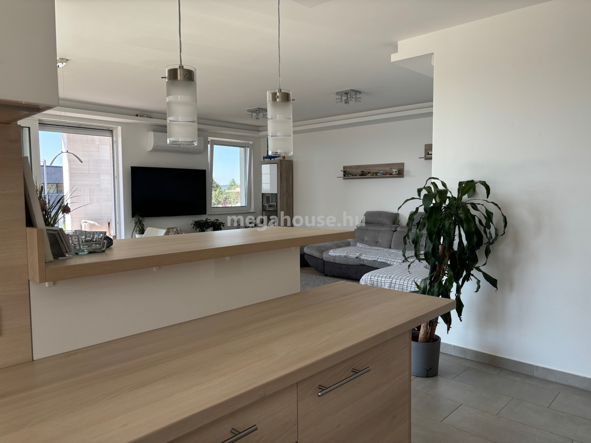 A lépcsőházból belépve egy tágas előtérbe érkezünk. Innen érhető el egyik irányba a világos, amerikai konyhás/étkezős nappali, másik irányba 3 kényelmes méretű hálószoba, egy zuhanyzós fürdőszoba, valamint egy káddal felszerelt fürdőszoba is. Az ingatlan dupla teraszos. A 15 nm-es erkély az egyik hálószobából, míg a nagyobb, 22 nm-es, széles terasz a nappaliból érhető el, melyről csodás panorámát élvezhetünk.