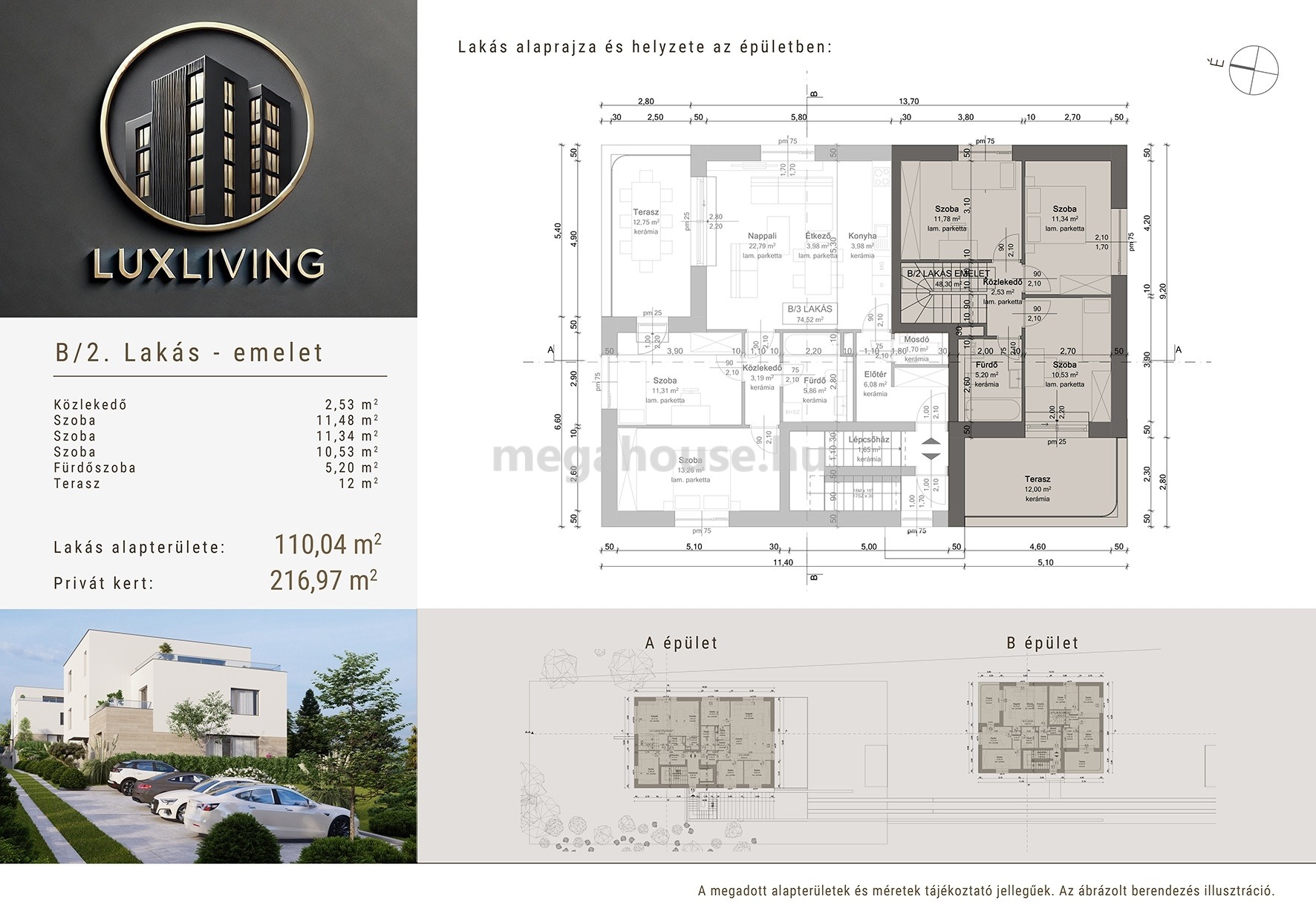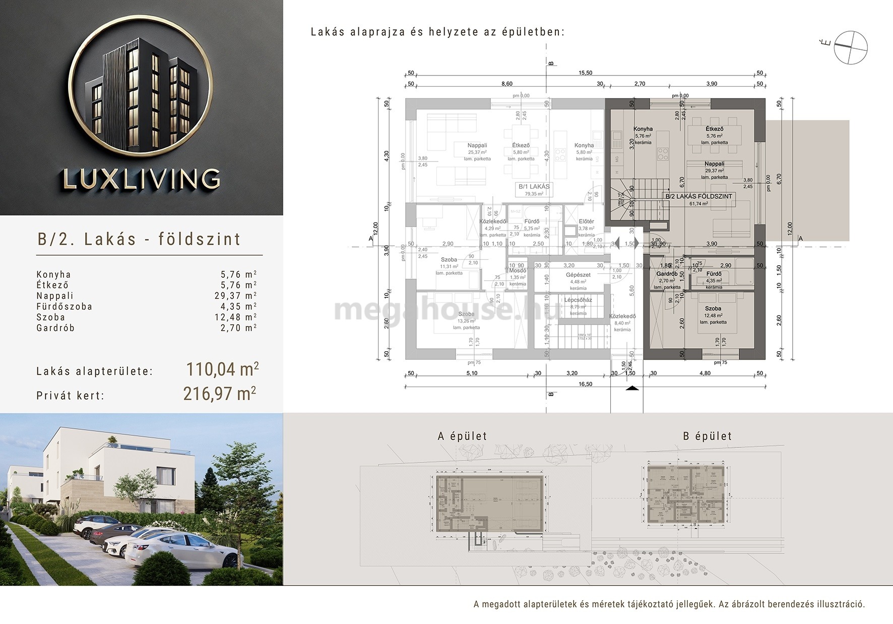 A lakás nettó 110nm, N+4 szoba, 20nm terasz, 217nm saját kert - 214M Ft