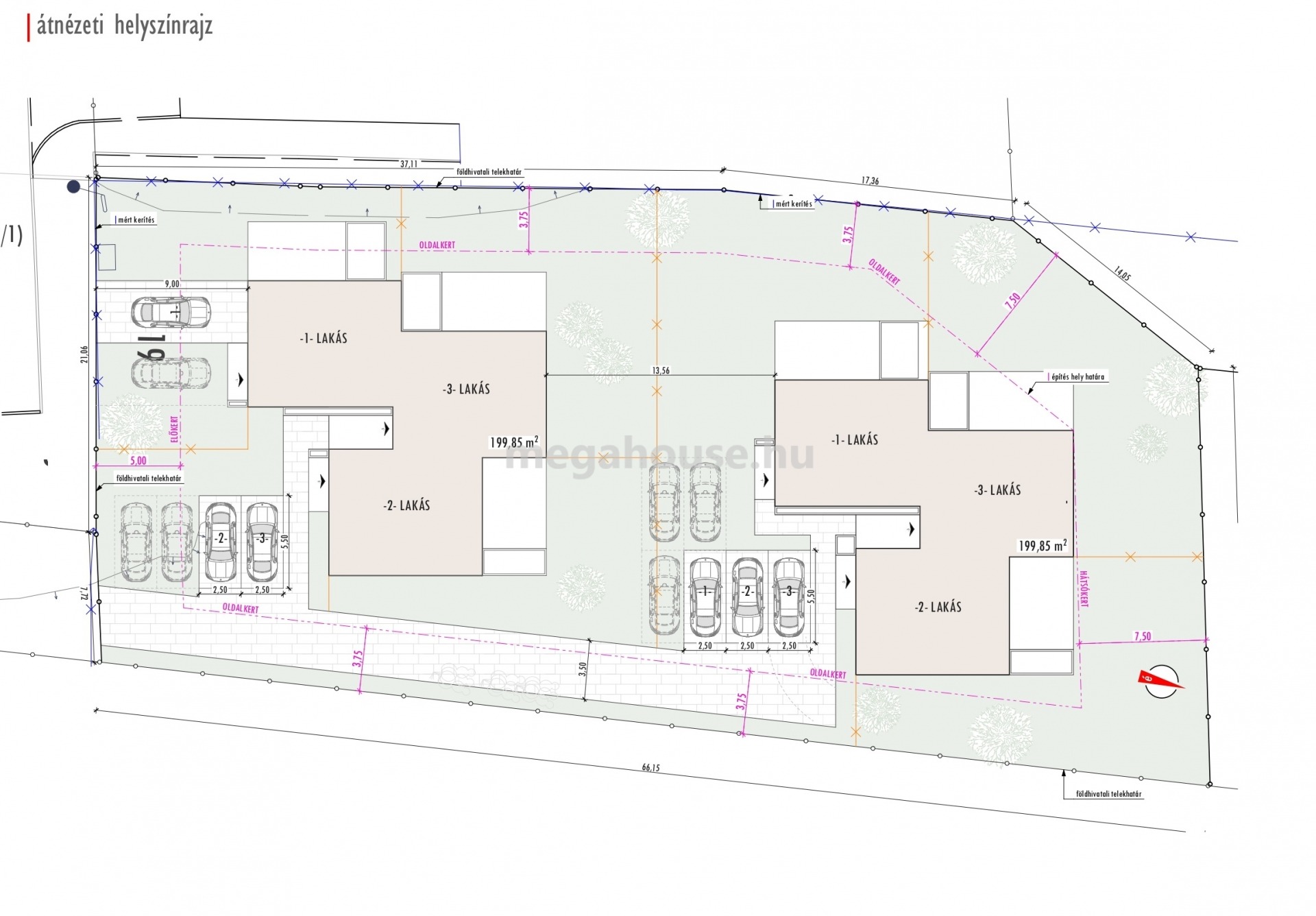 Lakótér nettó: 102 nm + 20nm terasz + 12nm erkély + 250nm sajár kert.