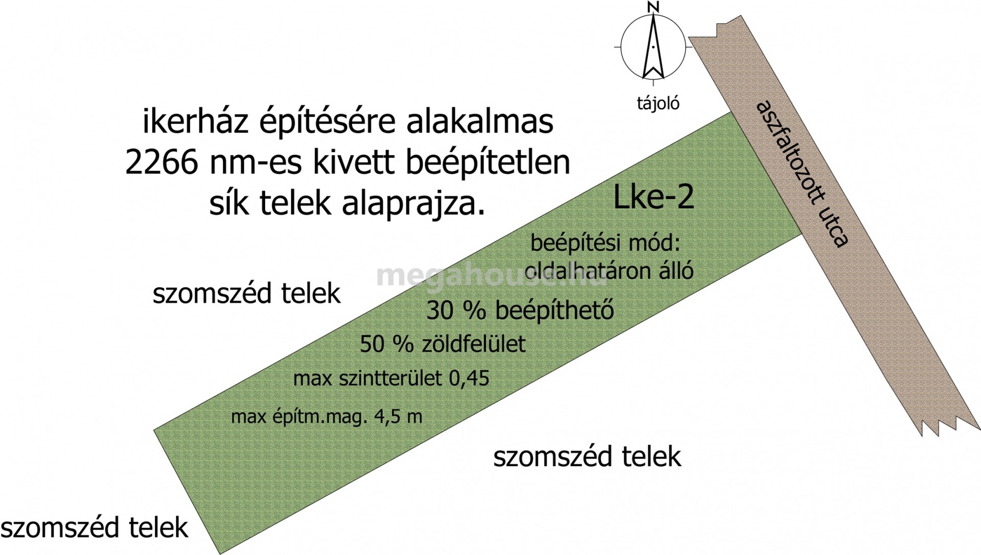 Ajánlom beruházóknak ikerház építésre, olyan magáncélú építőknek, akik a családi ház mellé nagy kertet képzelnek, vagy olyan vállalkozásnak ahol a szolgáltatás és a családi ház egy helyen megvalósítható.