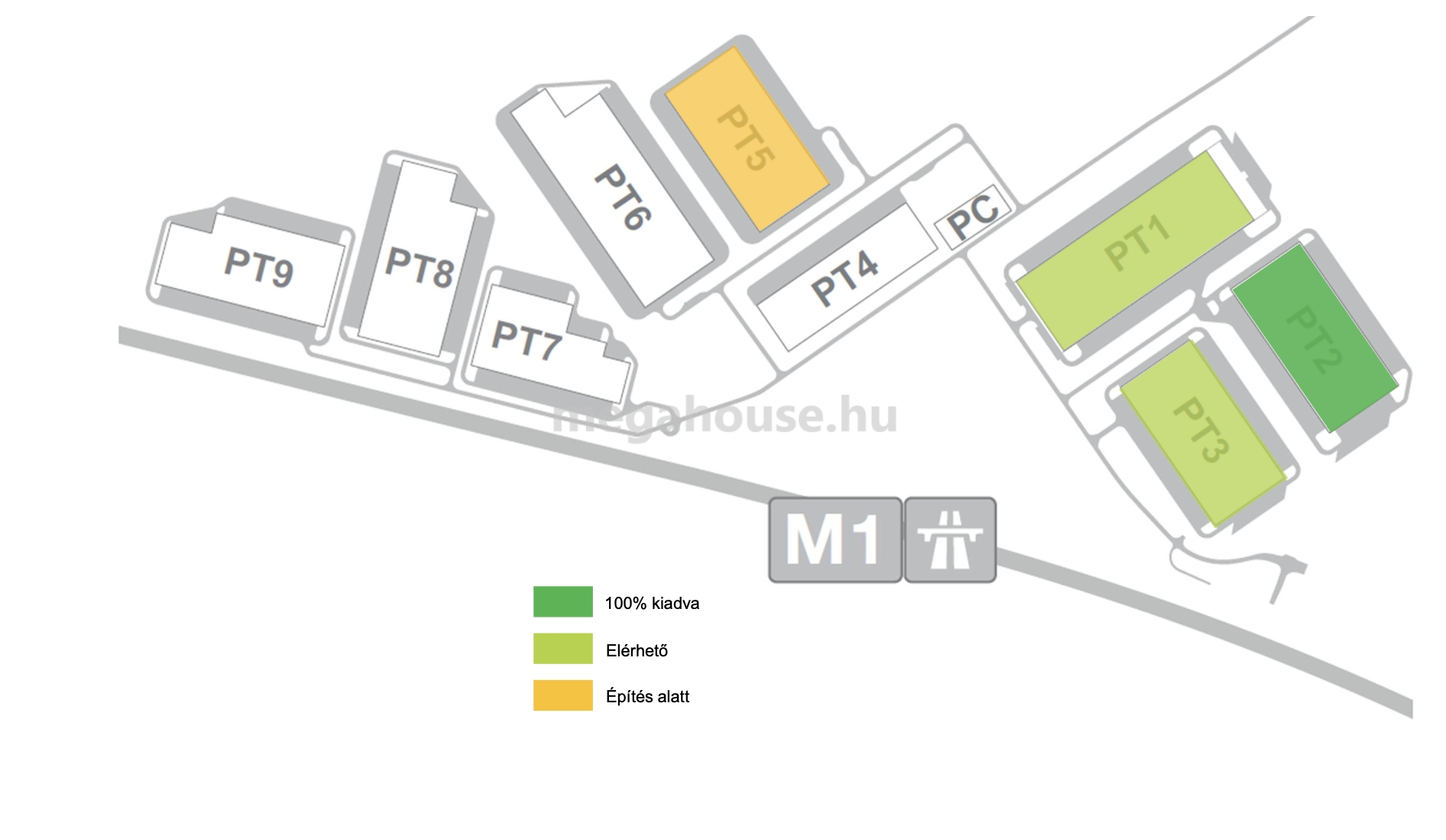 Pátyon, Budapesttől 22 percre, az M1 autópálya mellett, 17.000 nm méretű csarnok havi 110.500 EUR-ért kiadó.