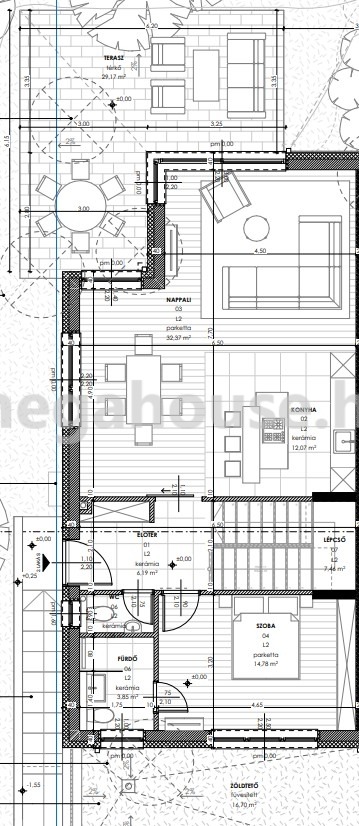 Garázsszint (-1): 47,02 m² – saját, 2 állásos garázs