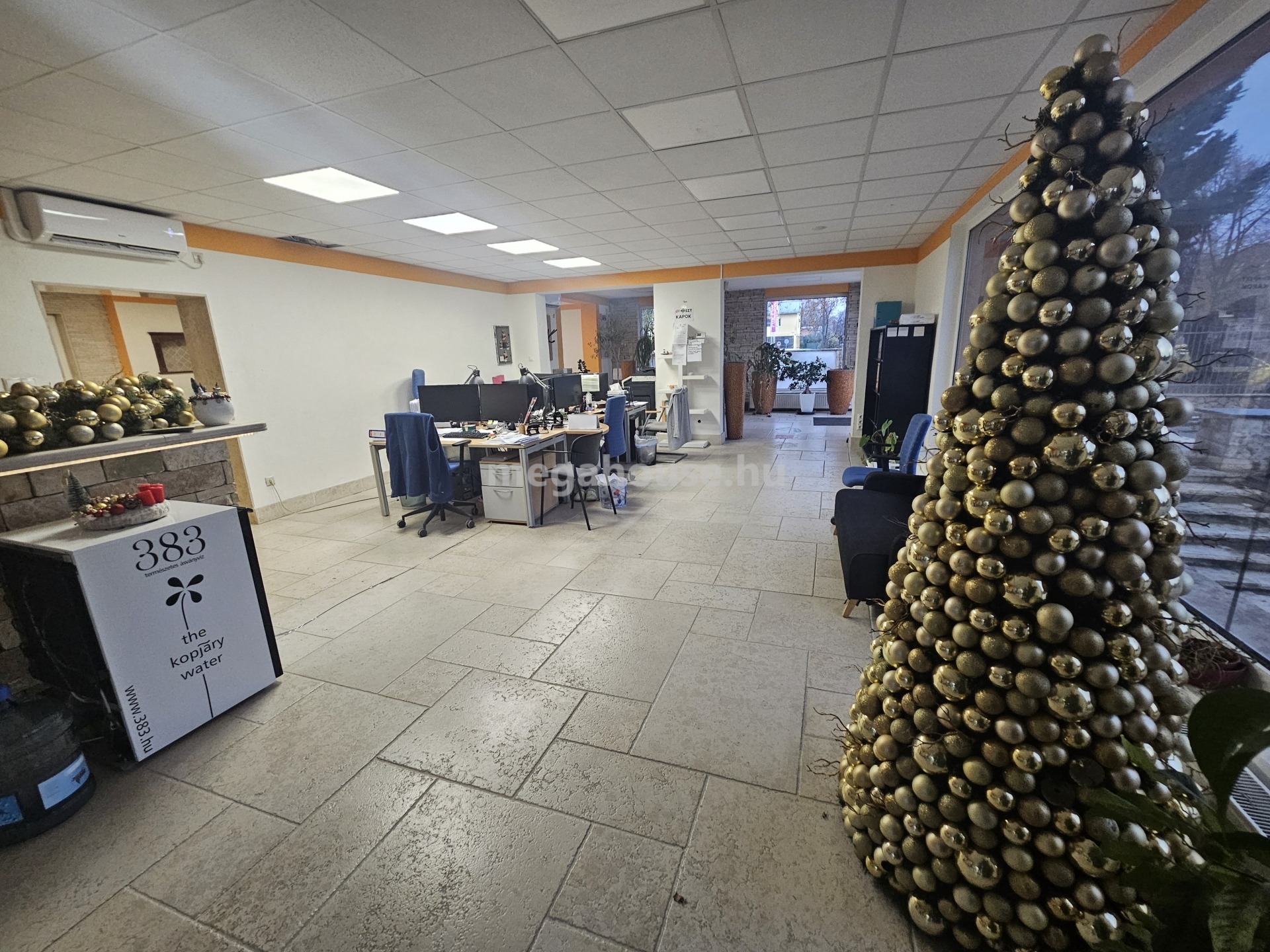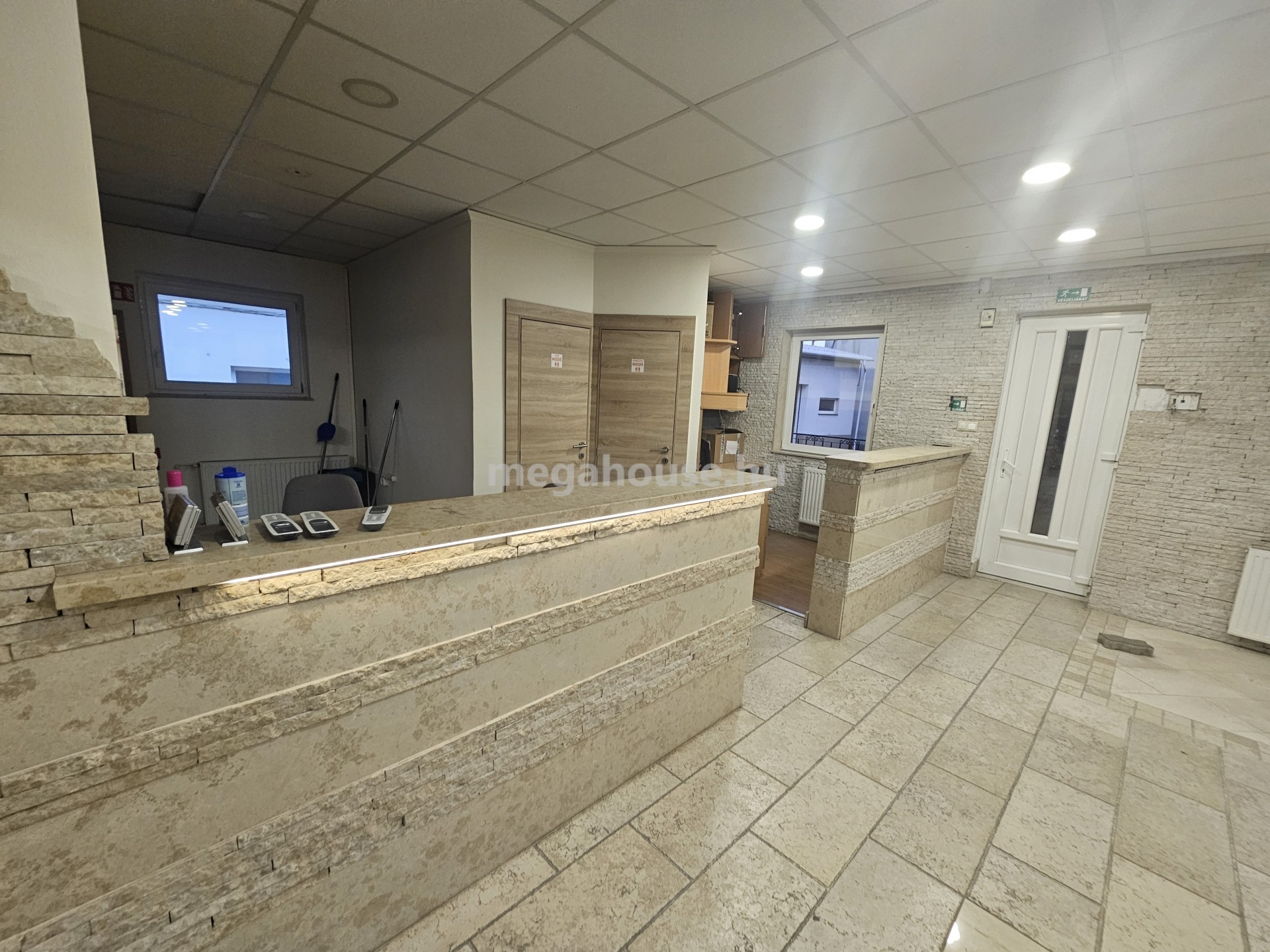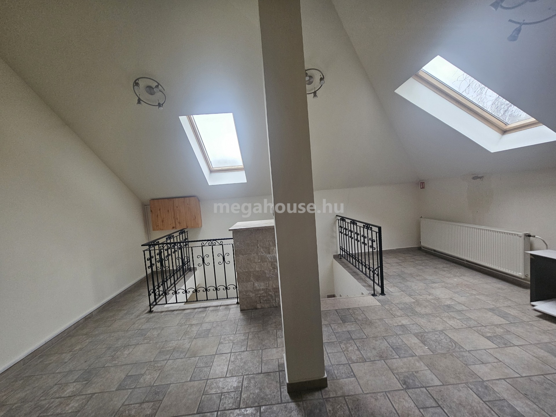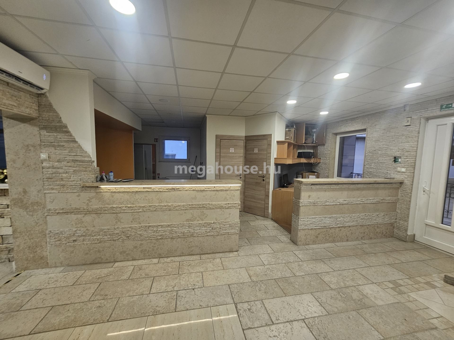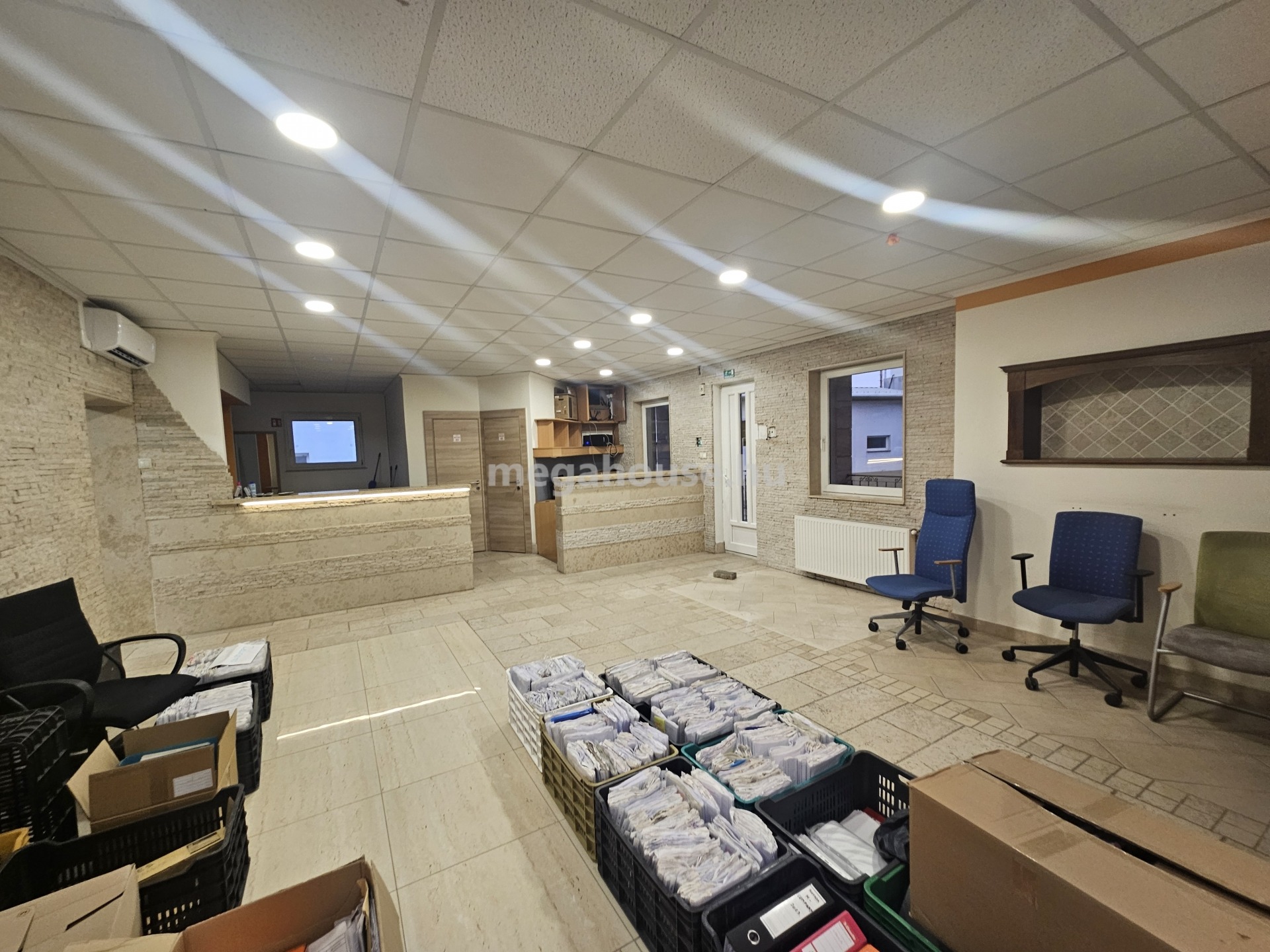 Az iroda ( 239 nm ) a felső szinten került kialakításra . Külön fűtésrendszer, és almérők, kisebb-nagyobb tárgyalók és irodahelyiségek.Rejtette világítások klímák, kellemes munkakörnyezet.