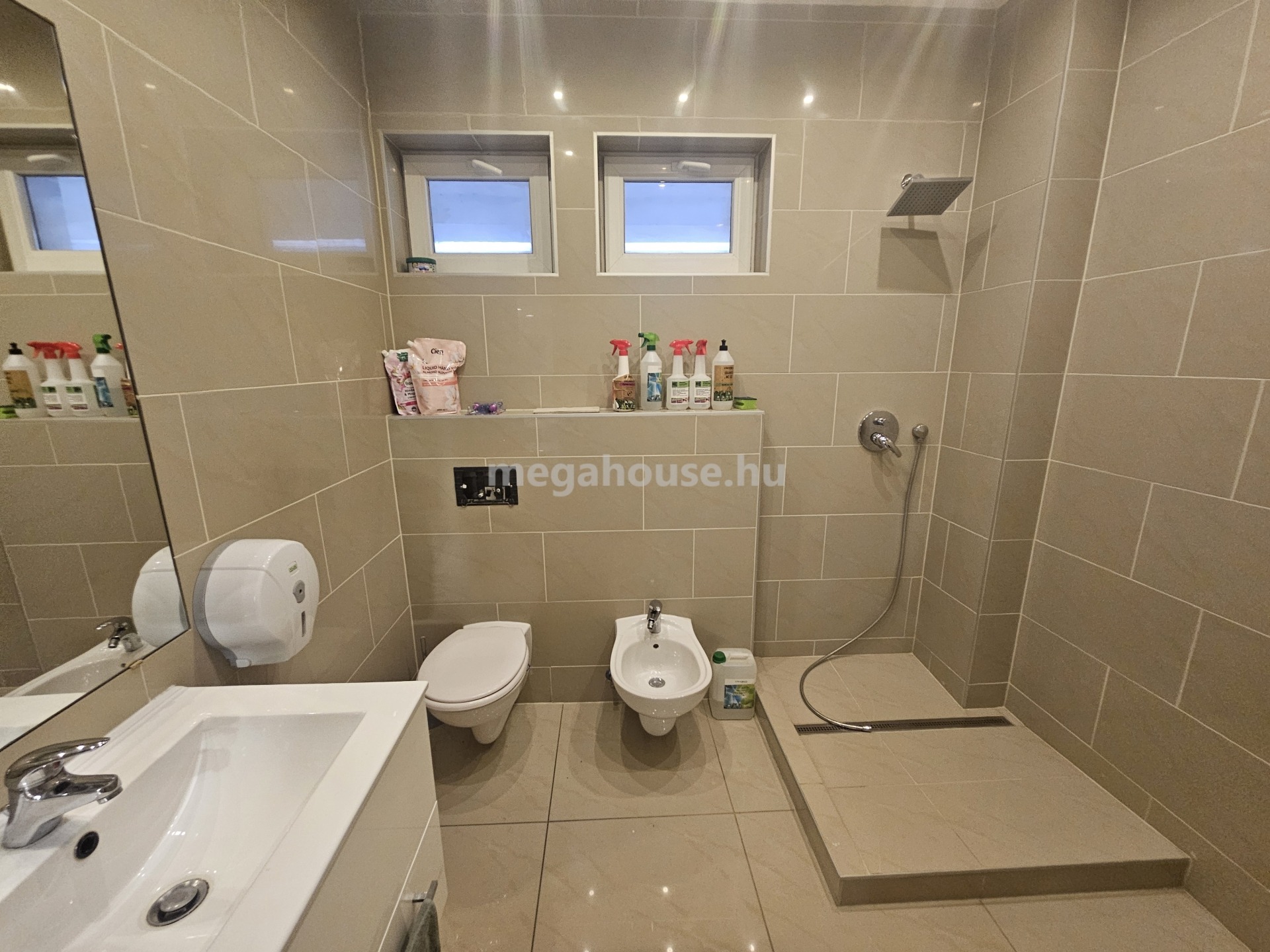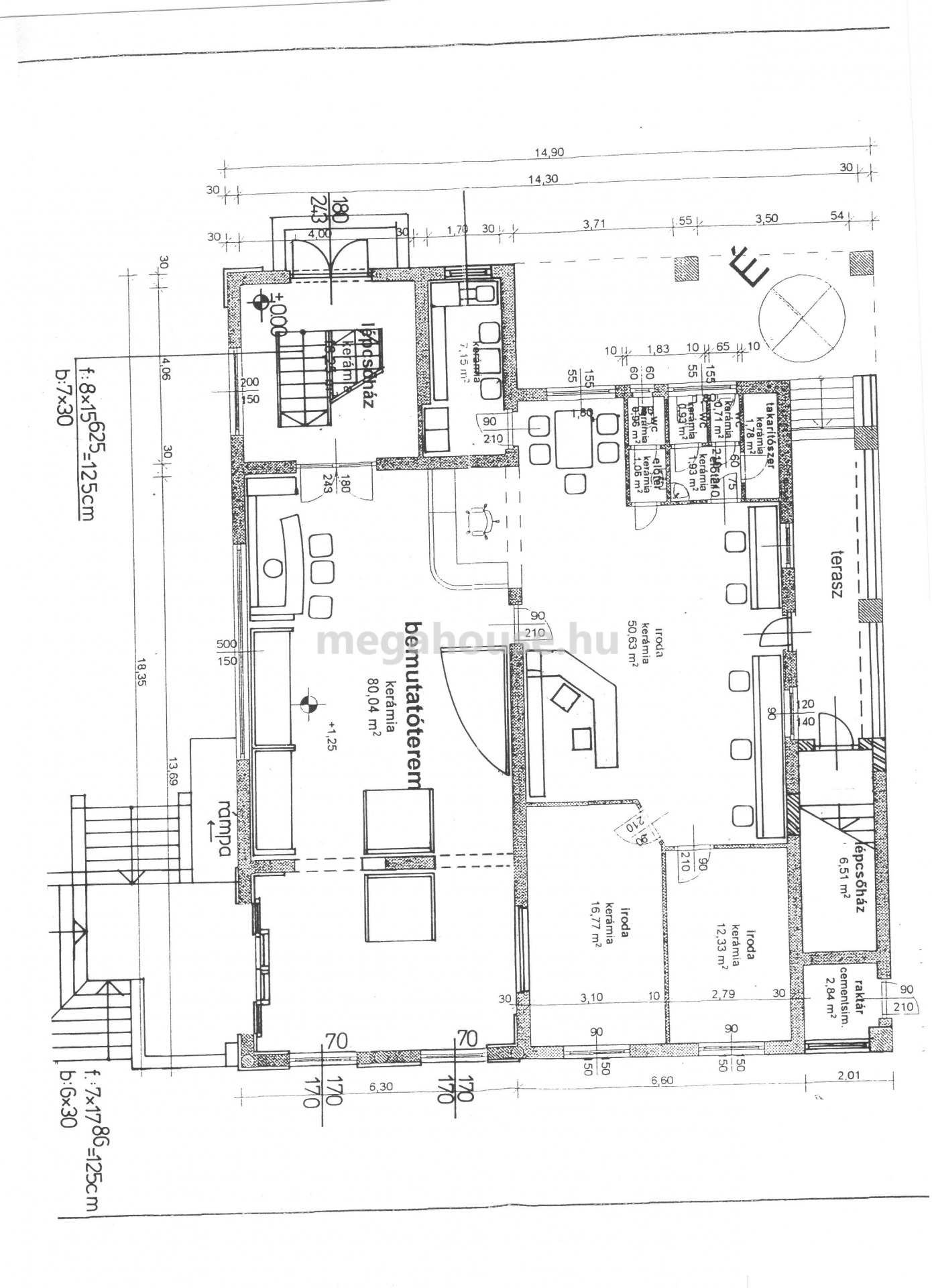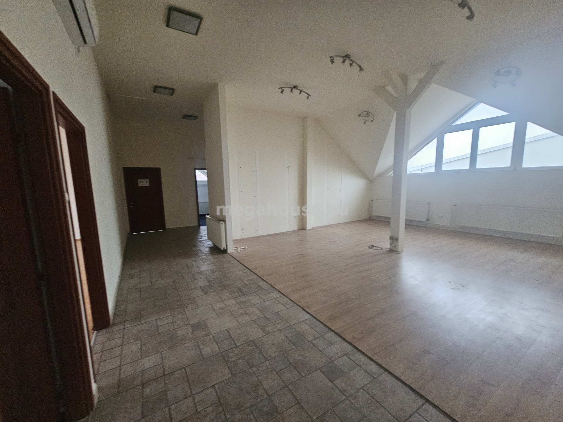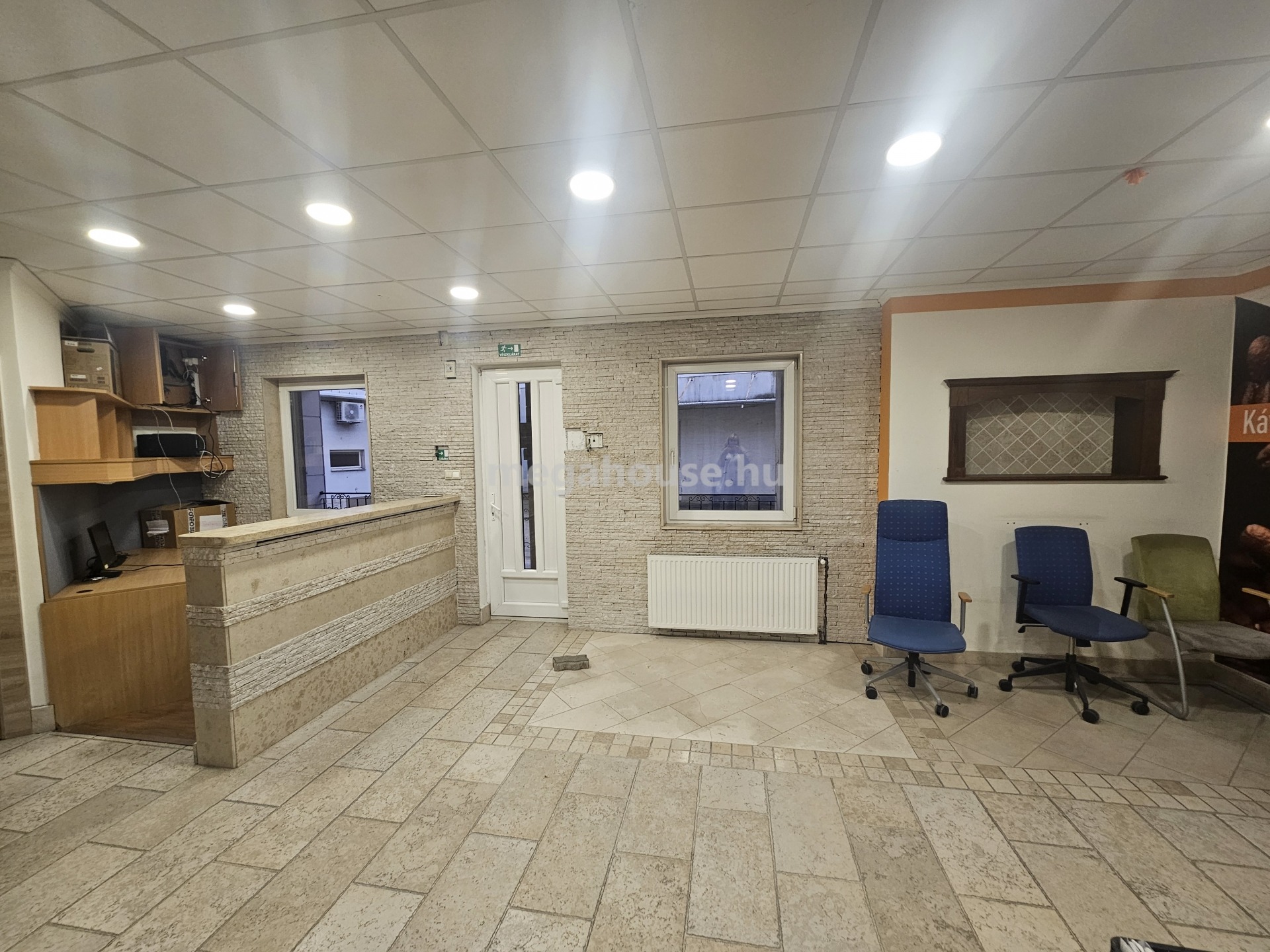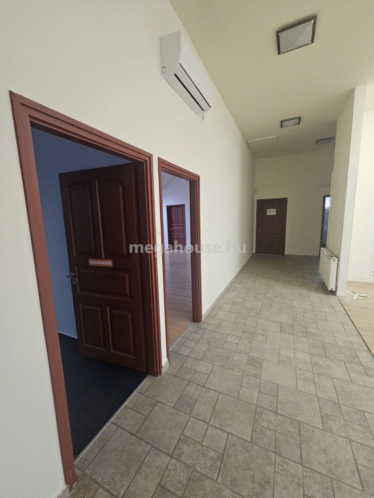 Az iroda ( 239 nm ) a felső szinten került kialakításra . Külön fűtésrendszer, és almérők, kisebb-nagyobb tárgyalók és irodahelyiségek.Rejtette világítások klímák, kellemes munkakörnyezet.