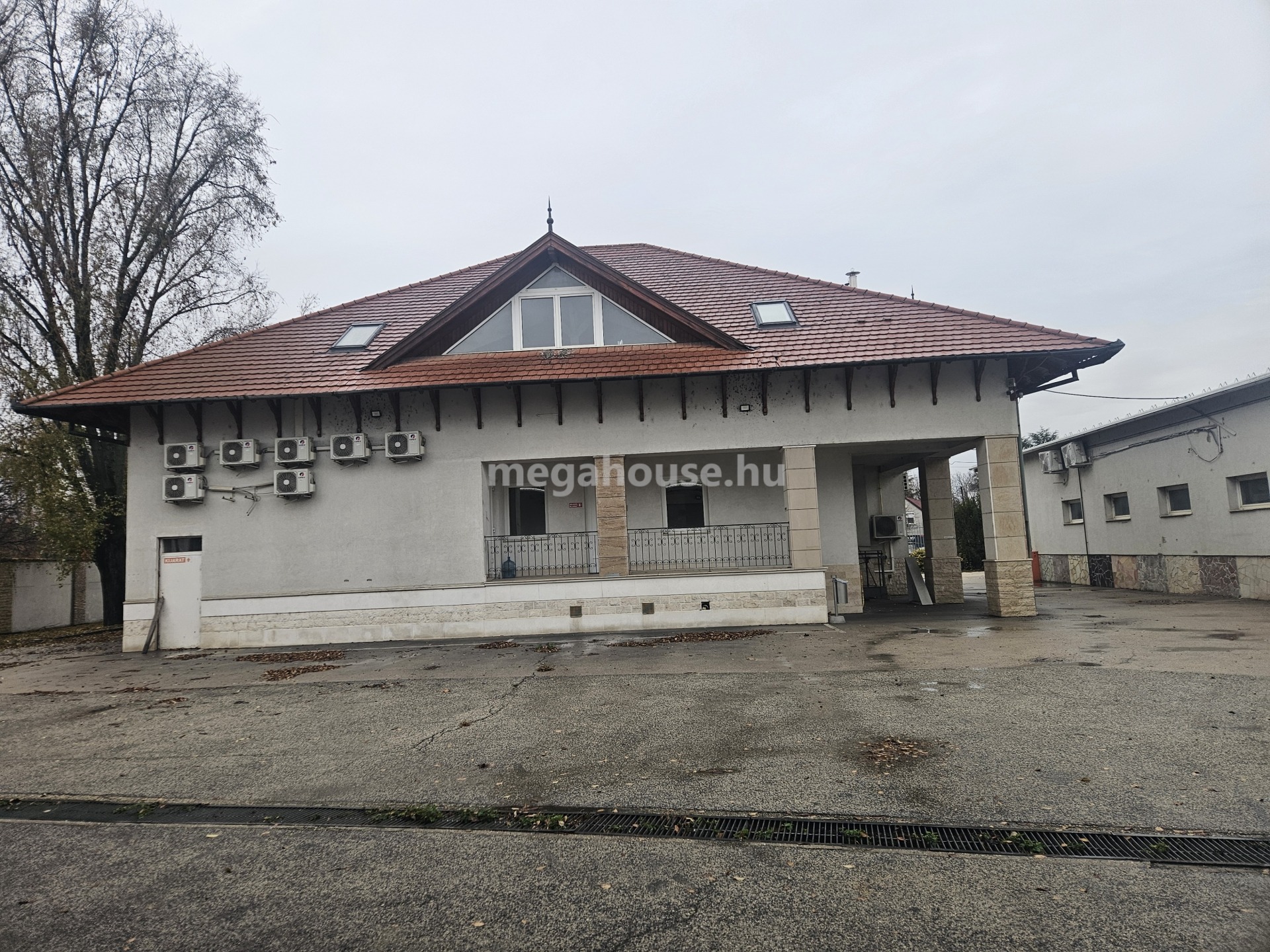 A jó állapotú, praktikus és célirányos elrendezésű megkímélt ingatlan egy 3 épületből álló kereskedelmi komplexum irodai és bemutatóterem funkcióval, hatalmas parkolóval, kéziraktárral és nagy belmagasságú, kamionnal is megközelíthető raktárral.