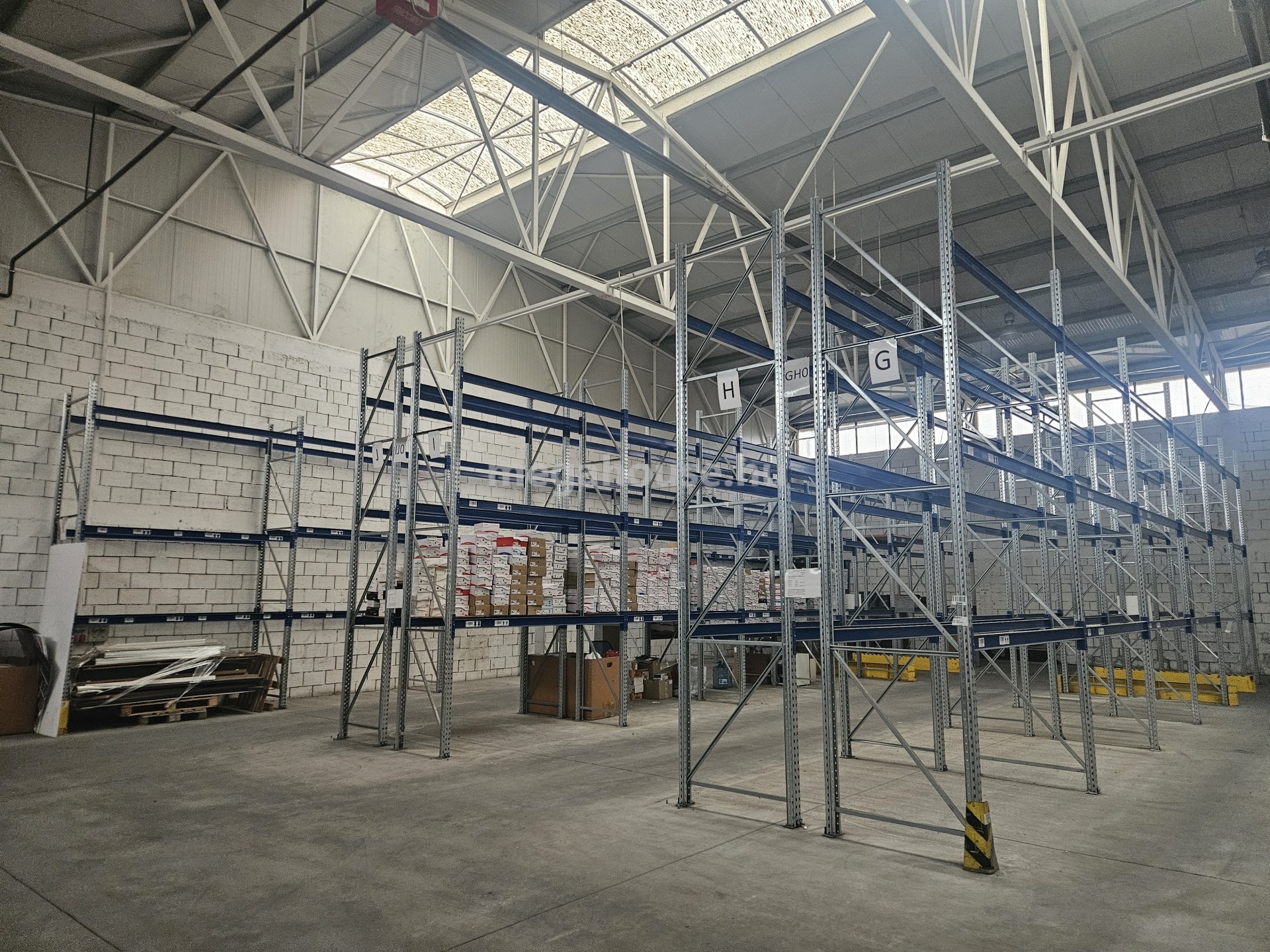 Szerkezet:pillérváz, tégla kitöltő falazattal , 6 m belmagassággal.Hörmann magas kapuk (2db ) a ki és bejárathoz, kamionos egyirányú forgalommal az árupakoláshoz. Ipari padló, Acél rácsos tartó, Lindab lemezfedés. teljes belmagasságban kiépített polcszerkezet. Kiváló állapot.