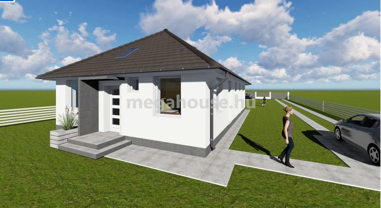 Tordas csendes zsákutcájában megvásárolható újépítésű egyszintes 100 nm-es családi ház jellegű ikerház, saját parkosított kerttel 91 millió Forintért.