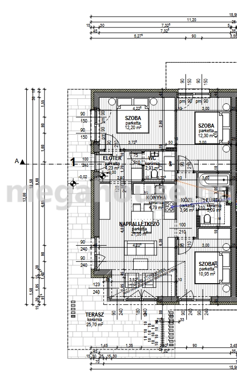 A környék új építésű házakkal beépített, elegáns, csendes és nyugodt. A prémium minőségű anyagokból készülő lakás praktikusan bútorozható tágas előszobájából bal kéz felől nyílik egy szoba, a bejárattal szemközt pedig a vendég WC és egyben gépészeti – háztartási helyiség. A lakás központi részén a hatalmas nyílászáróknak köszönhetően napfényes és világos, 26 nm alapterületű teraszkapcsolattal bíró amerikai konyhás nappali tér fogad minket. A panorámás terasz ideális elosztású és méretű, amelyet körülölel a 160 nm alapterületű privát kert. A lakásban további 2 jó méretű hálószoba és egy minden igényt kielégítő, dupla mosdóval, zuhanyzóval és káddal is felszerelt fürdőszoba is kialakításra kerül.