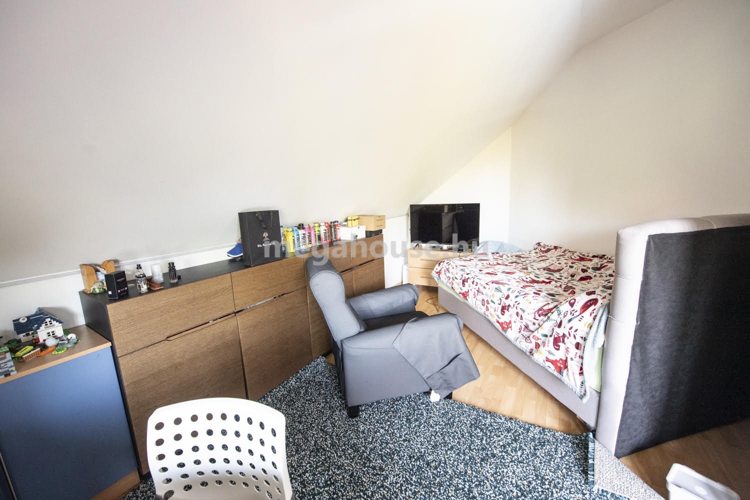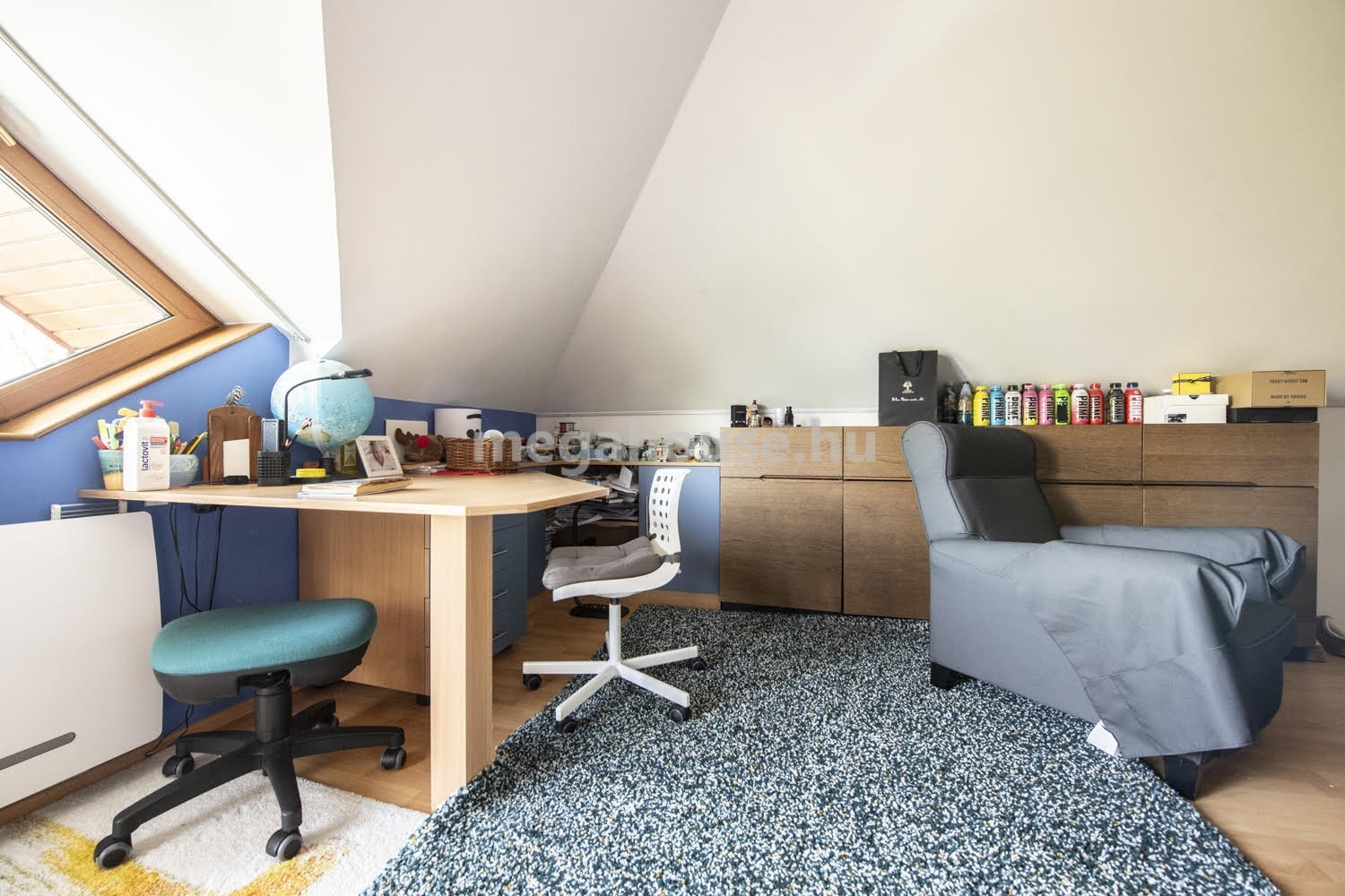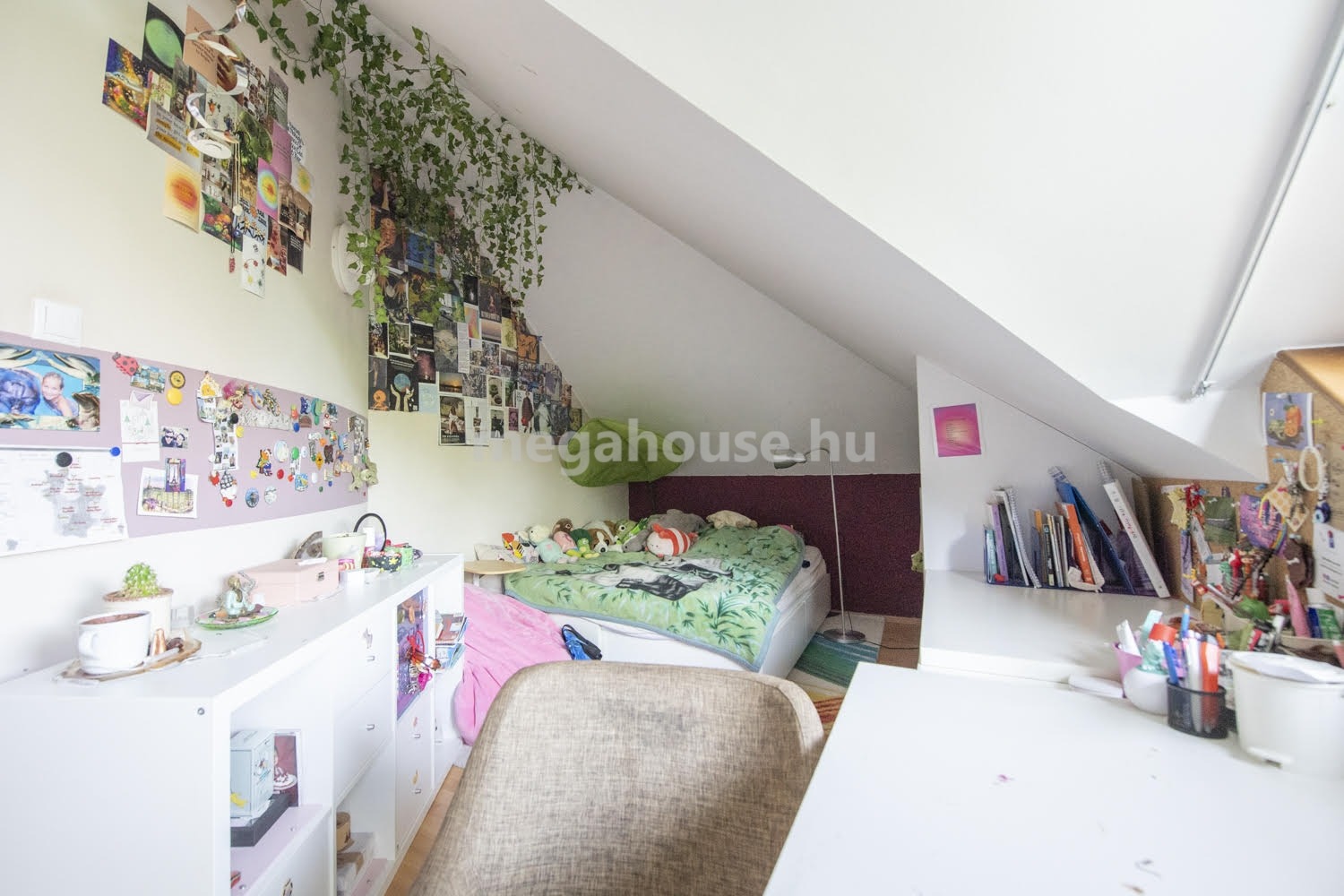 A lakás félemelete teljes egészében a szülők felségterülete. Itt található egy kényelmes méretű hálószoba, hozzá kapcsolódó fürdőszobával, valamint egy dolgozó szobával, mely átalakítható akár gardrób helyiséggé is.