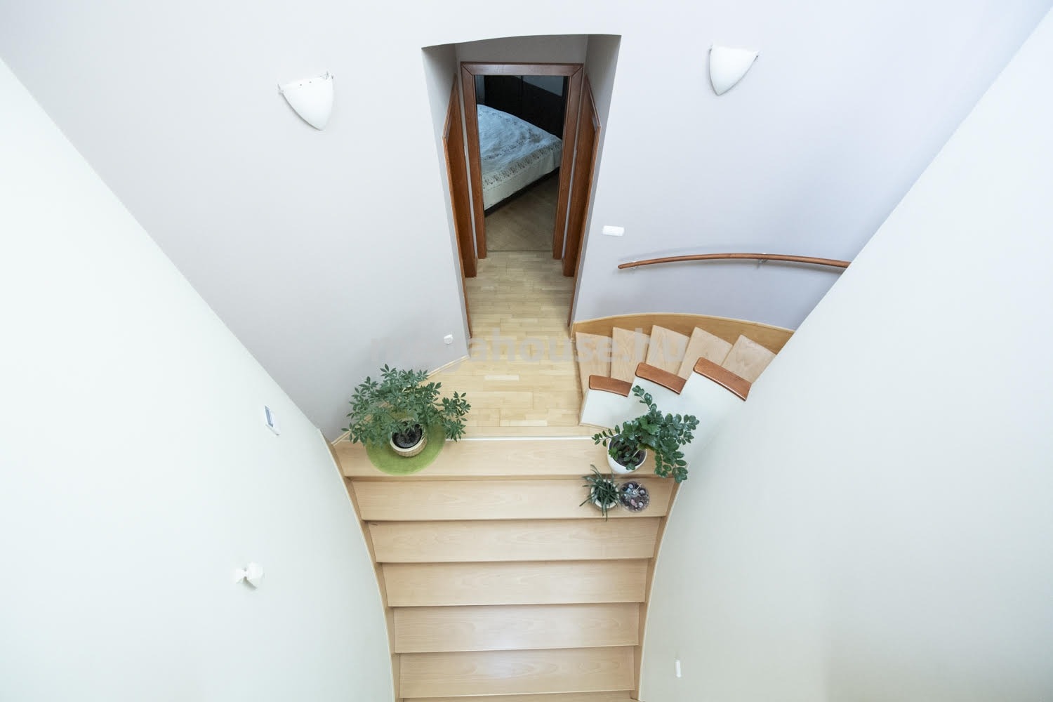 A ház felső szintjén található két erkély kapcsolatos hálószoba, fürdőszoba, háztartási helyiség, valamint egy gardrób szoba is.